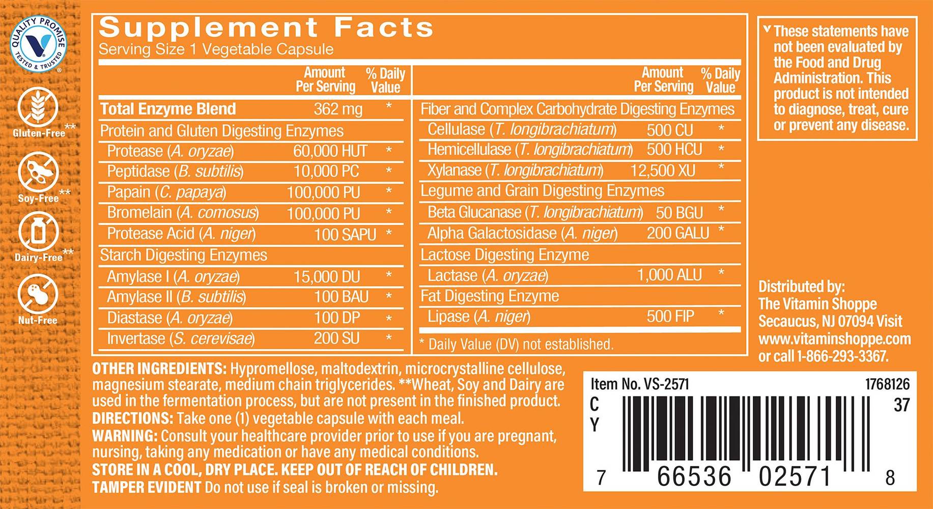 Supports gluten and lactose digestionComplete digestive enzyme formulaSuitable for everyday wellness seekersFree of gluten, dairy, soy, and nuts The Vitamin Shoppe® brand Digest Extra capsules contain an array of digestive enzymes that help make digesting gluten and lactose a little easier on your body. Digestive enzymes help break down food so your body can absorb the nutrients you need for overall health and wellness. To support gluten and lactose digestion, take one capsule at mealtime with a small glass of water alongside your first few bites. Frequently Asked Questions Does The Vitamin Shoppe® brand Digest Extra contain wheat, dairy, or soy?Wheat, dairy, and soy are used in the fermentation process of this formula, but are not present in the finished