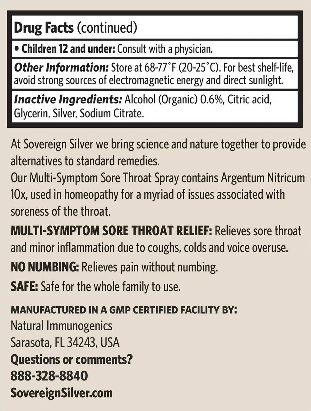 Relieves red and irritated throat; Eases throat inflammation; Thins and loosens mucus; Relieves sore throat and minor inflammation due to coughs, colds and voice overuse; Relieves pain without numbing; Use for red, dry, sore throat, and hoarseness.