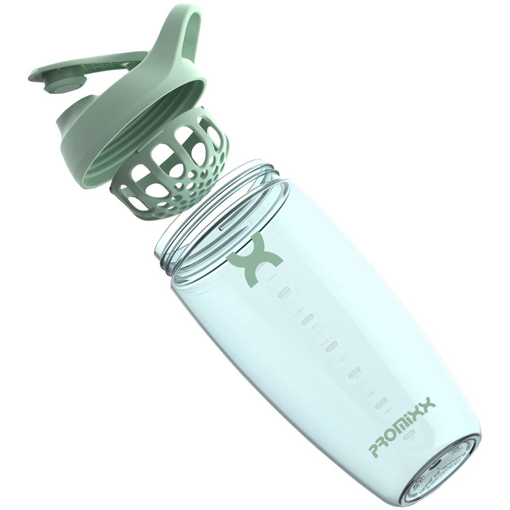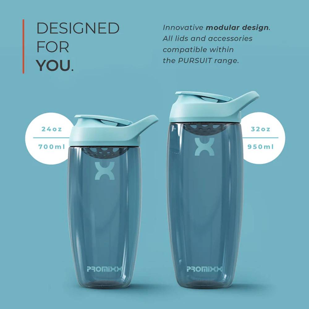 The PROMiXX PURSUIT Classic Shaker Bottle is here. Our protein shaker bottle has been designed with simplicity, functionality, and elegance in mind. Our PURSUIT shaker bottle is created from ECOZEN, a natural material based on the extract from plant or vegetable materials (FDA, LFGB & ESFA approved). Its also durable, odor and stain resistant and BPA-free, which means your protein stays clean. The perfectly curved contours combined with the lid's integrated carry loop means it fits comfortably and securely in your hand its also guaranteed leakproof so no leaks in your gym bag!