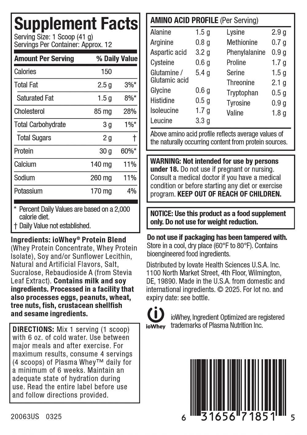 Plasma Whey Powder With 30G Iowhey Protein - Vanilla Cake Batter (1.08 Lbs. / 12 Servings)