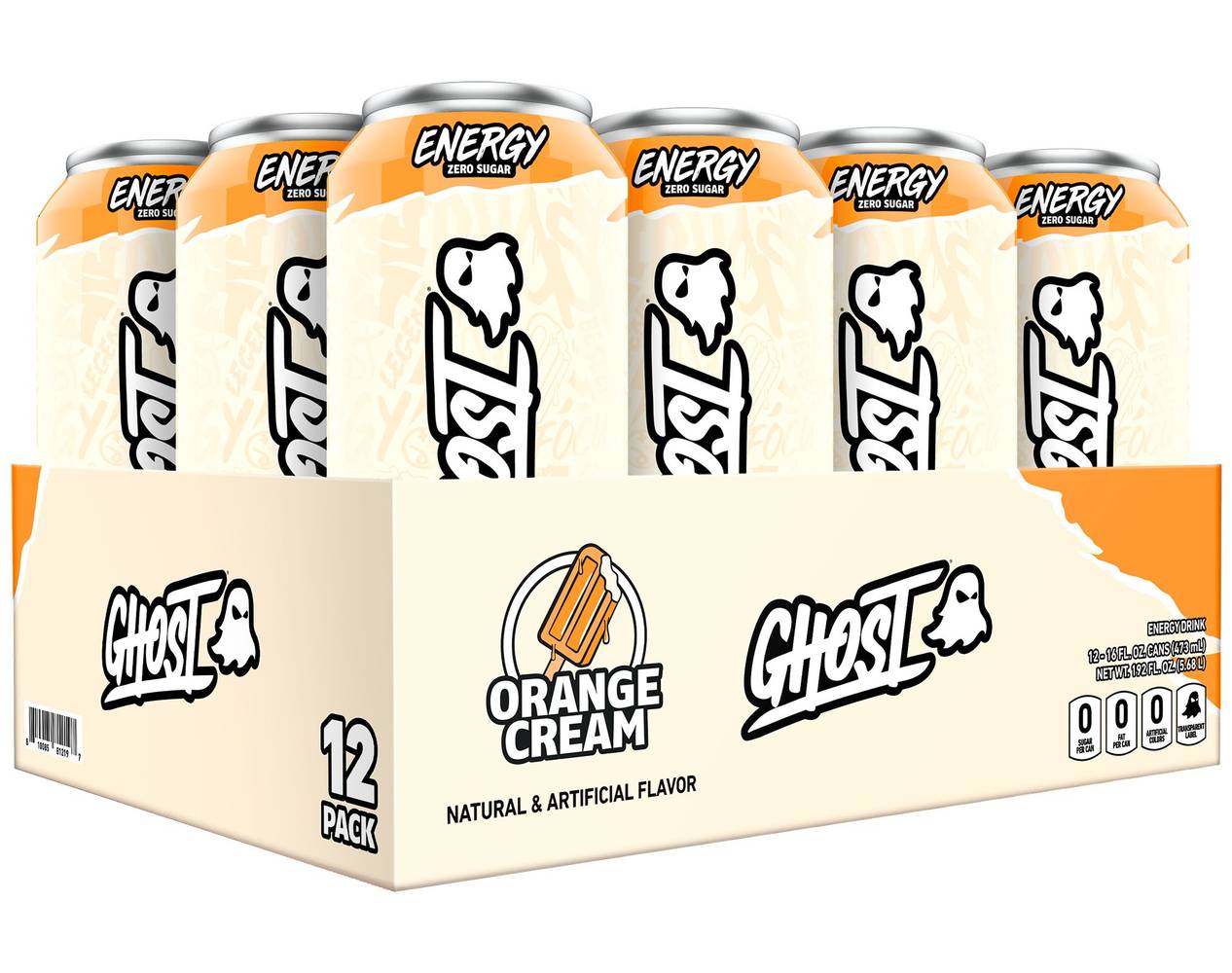 Ghost Energy Drink - Zero Sugar - Orange Cream (12 Drinks, 16 Fl Oz. Each)