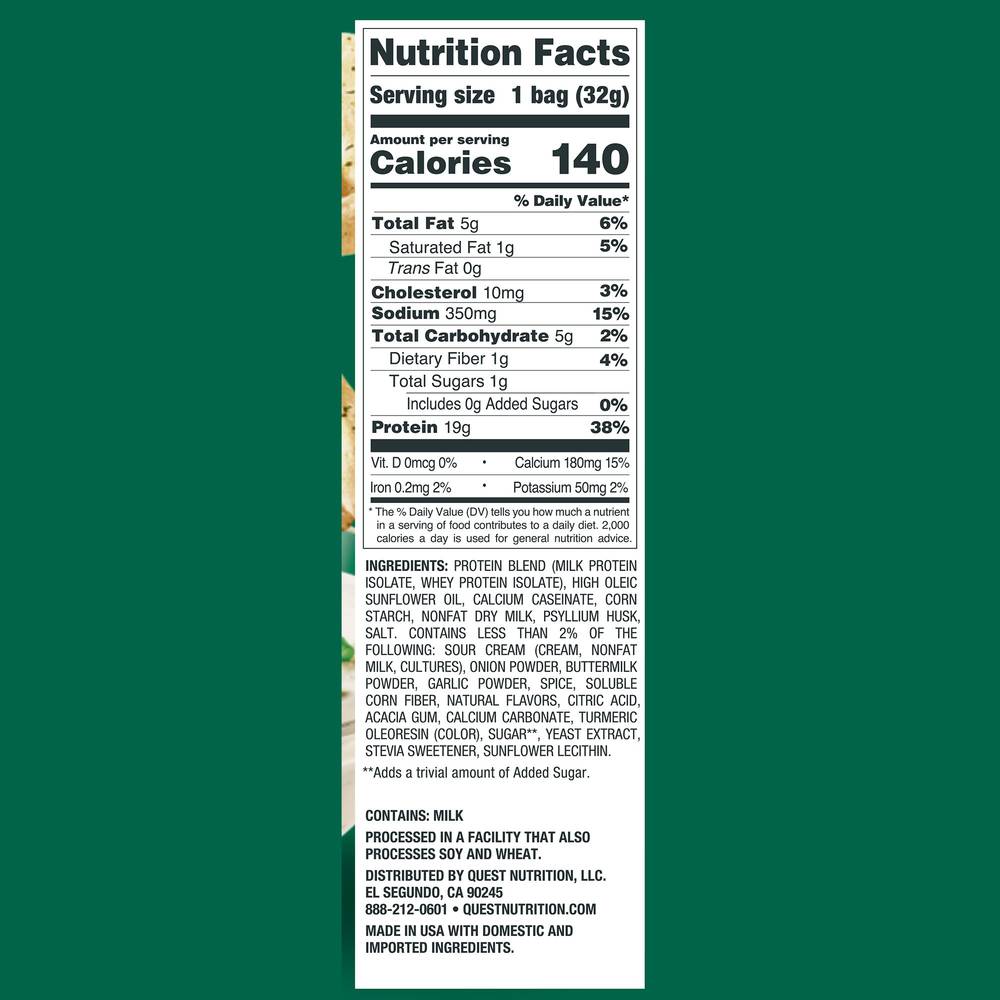 Savor the guilt-free crunch of sour cream & onion flavor sprinkled over baked chip goodness. This crispy classic has 21g of healthy protein and only 5g total carbs... so go ahead and eat the whole bag!