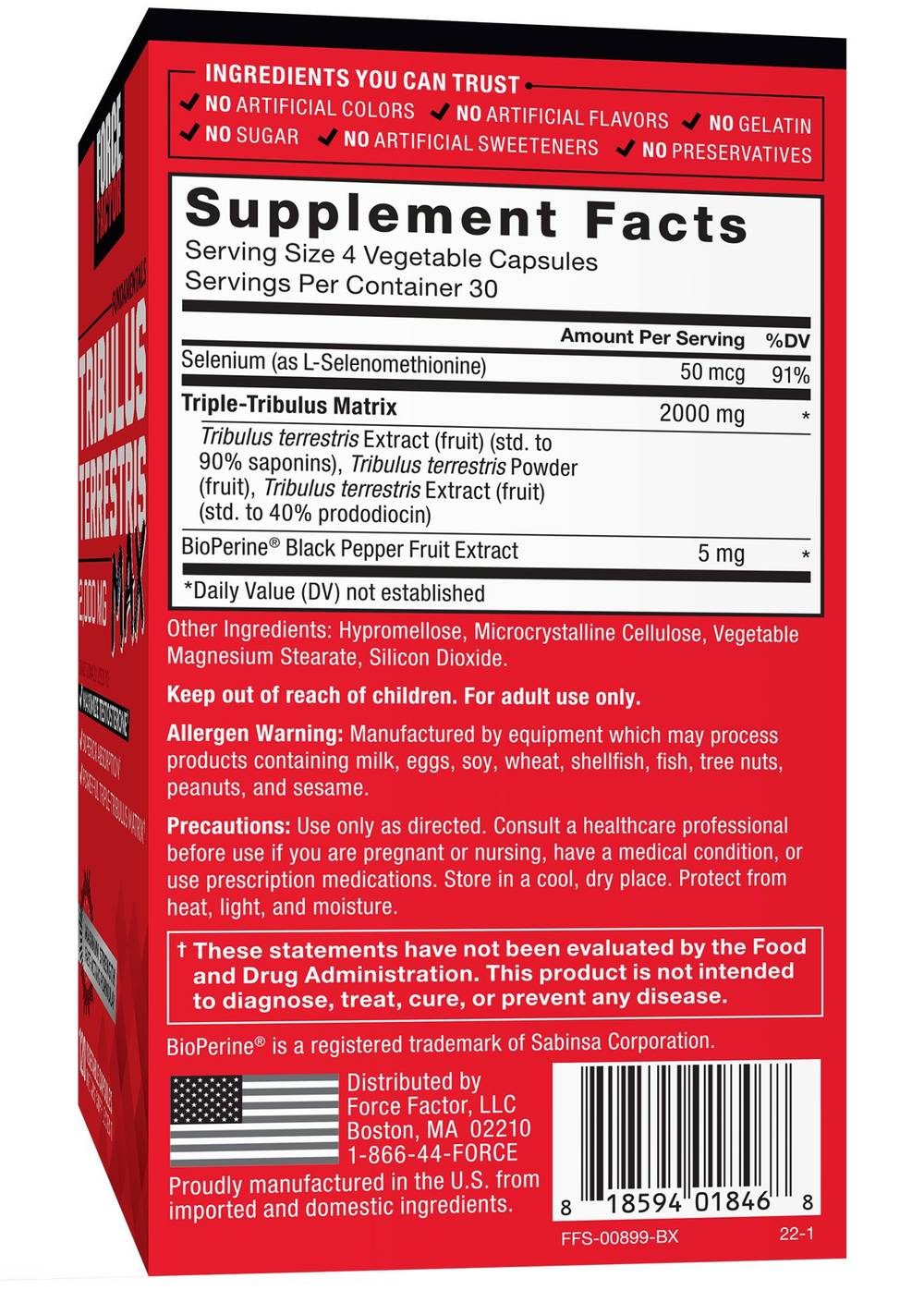 Traditionally used to support testosterone production Superior absorption Maximum strength, fast-acting formula Tribulus Terrestris is an herb traditionally used to support testosterone production and sexual vitality in men. Tribulus Terrestris Max by Force Factor delivers a massive 2,000mg dose of this versatile herb in a Triple-Tribulus Matrix for optimal support.
