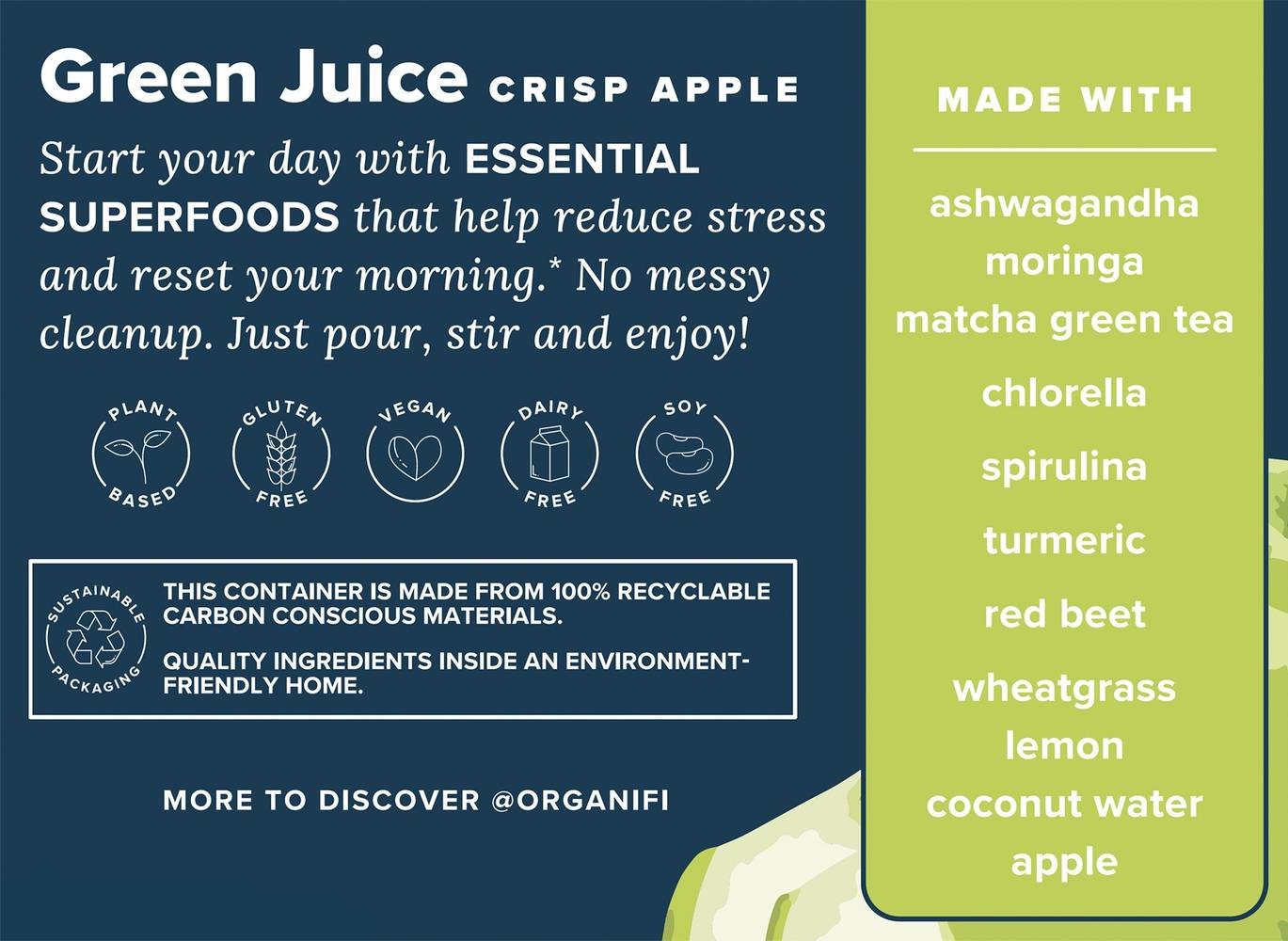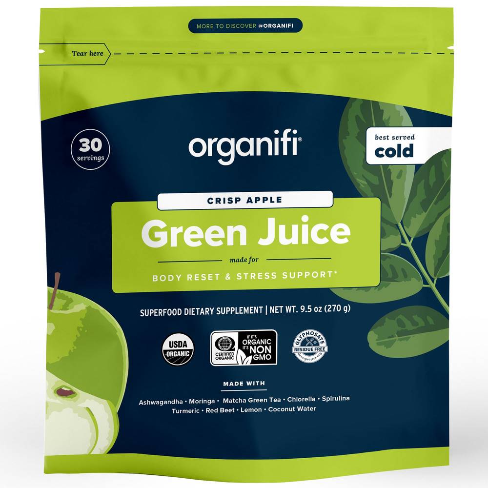 Organic Green Juice Superfood Powder - Body Reset & Stress Support - Green Apple (30 Servings)