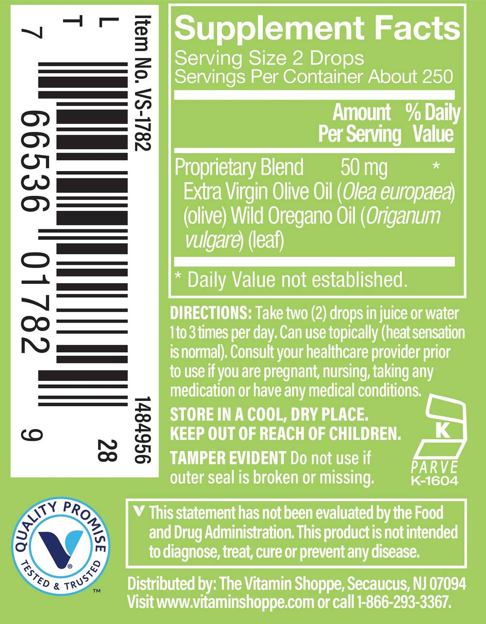 Promotes natural immunity Each serving contains 50mg of extra virgin olive oil & wild oregano oil Step aside rosemaryoregano is way more than just a staple seasoning. Oil of oregano contains phenols, which act as antioxidants that defend the body against free radicals and support immune health. Mix two drops of The Vitamin Shoppe� brand Oil of Oregano in water or juice to support your immune system.