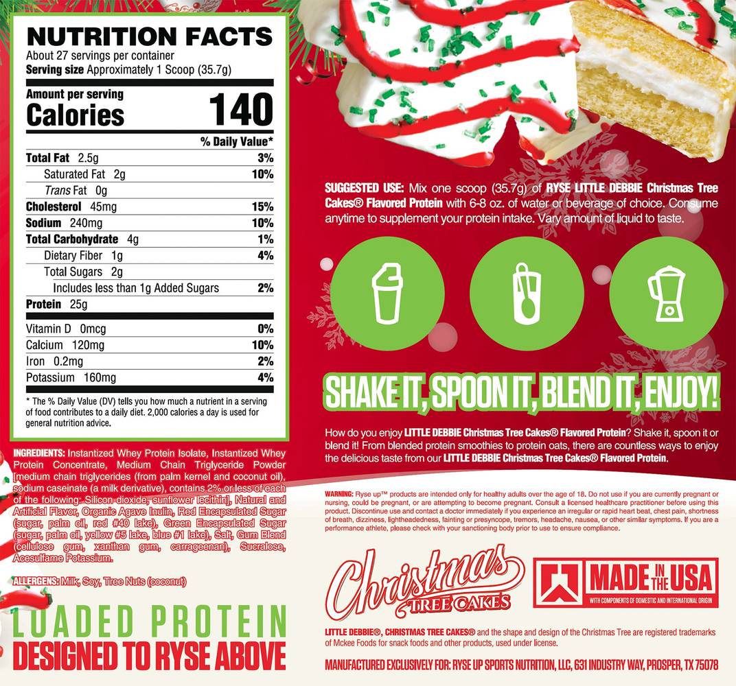 1.Build 2.Recover.3. Strength. Fuel your greatness. How do you enjoy Little Debbie christmas tree cakes flavored protein? Shake it, spoon it or blend it! From blended protein smoothies to protein oats, there are countless ways to enjoy the delicious taste from our Little Debbie christmas tree cakes flavored protein.