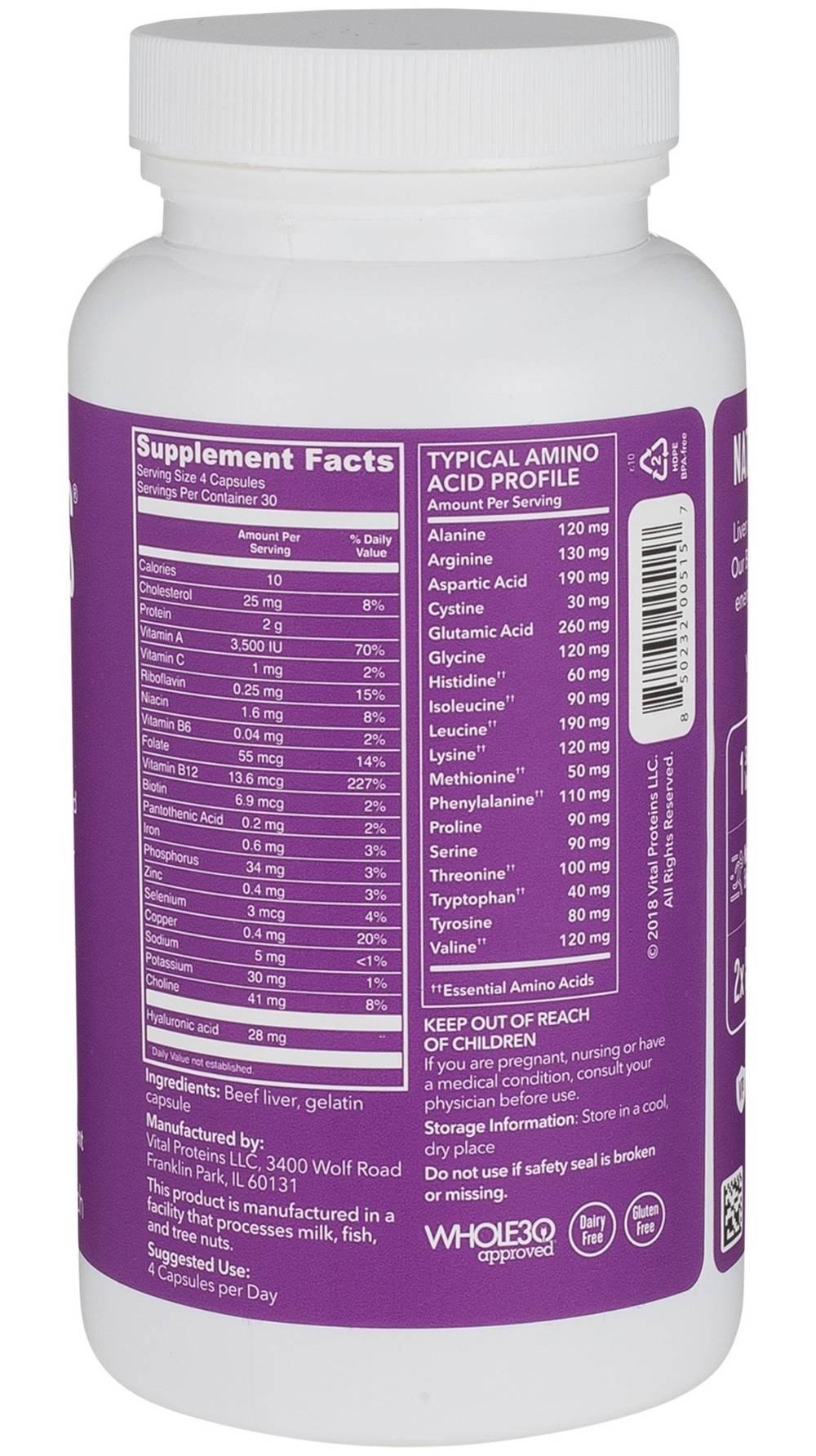 Liver is nature's most concentrated source of Vitamin A and is a vital nutrient for skin health. With an abundant amount of micronutrients including B12, Copper, Folate, Choline, and Hyaluronic Acid, this natural whole nutrition plays a vital role in the body, ensuring healthy skin and hair, strong bones, collagen synthesis, and a healthy immune function.**These statements have not been evaluated by the Food and Drug Administration. This product is not intended to diagnose, treat, cure, or prevent any disease. Packaging: Reusable