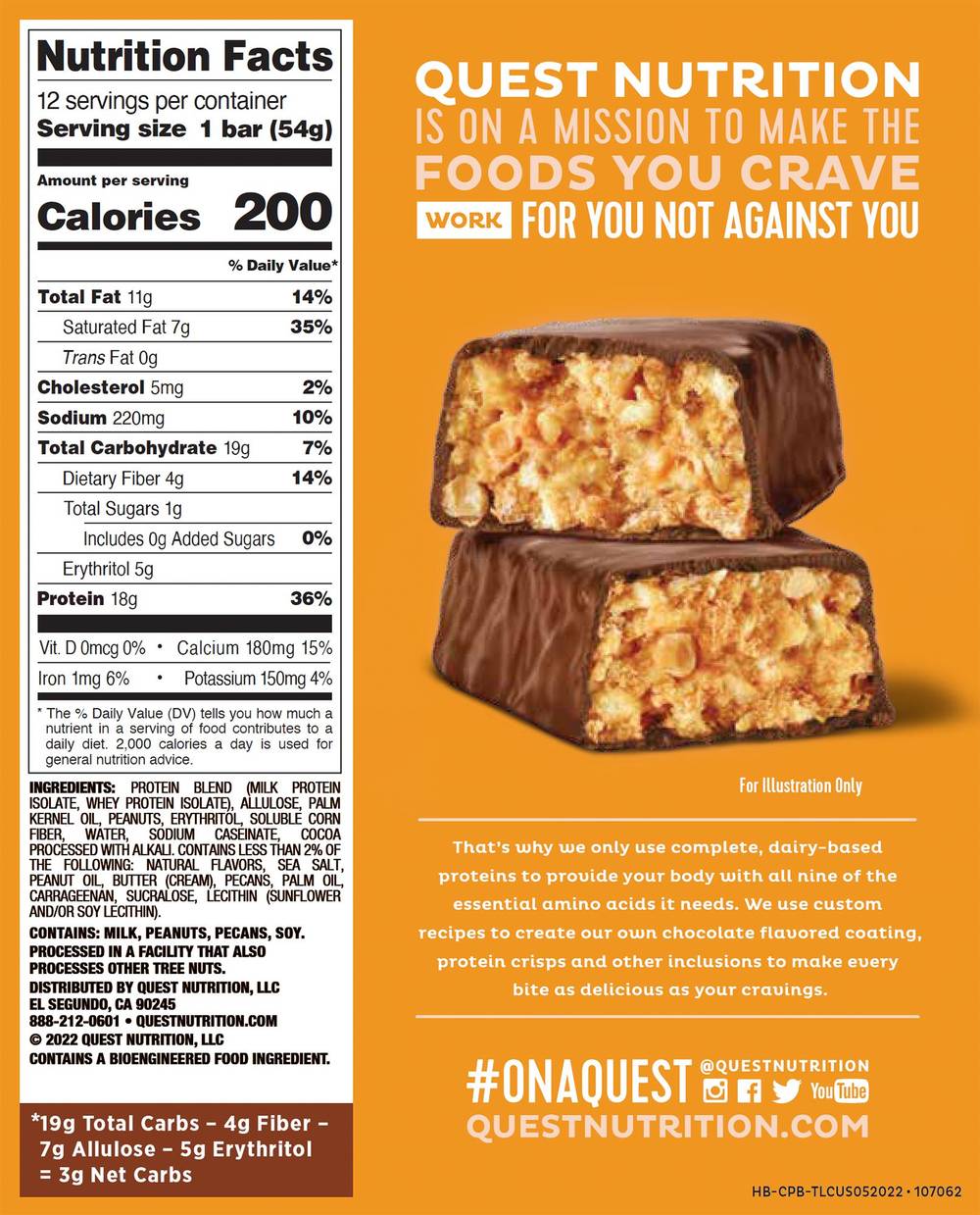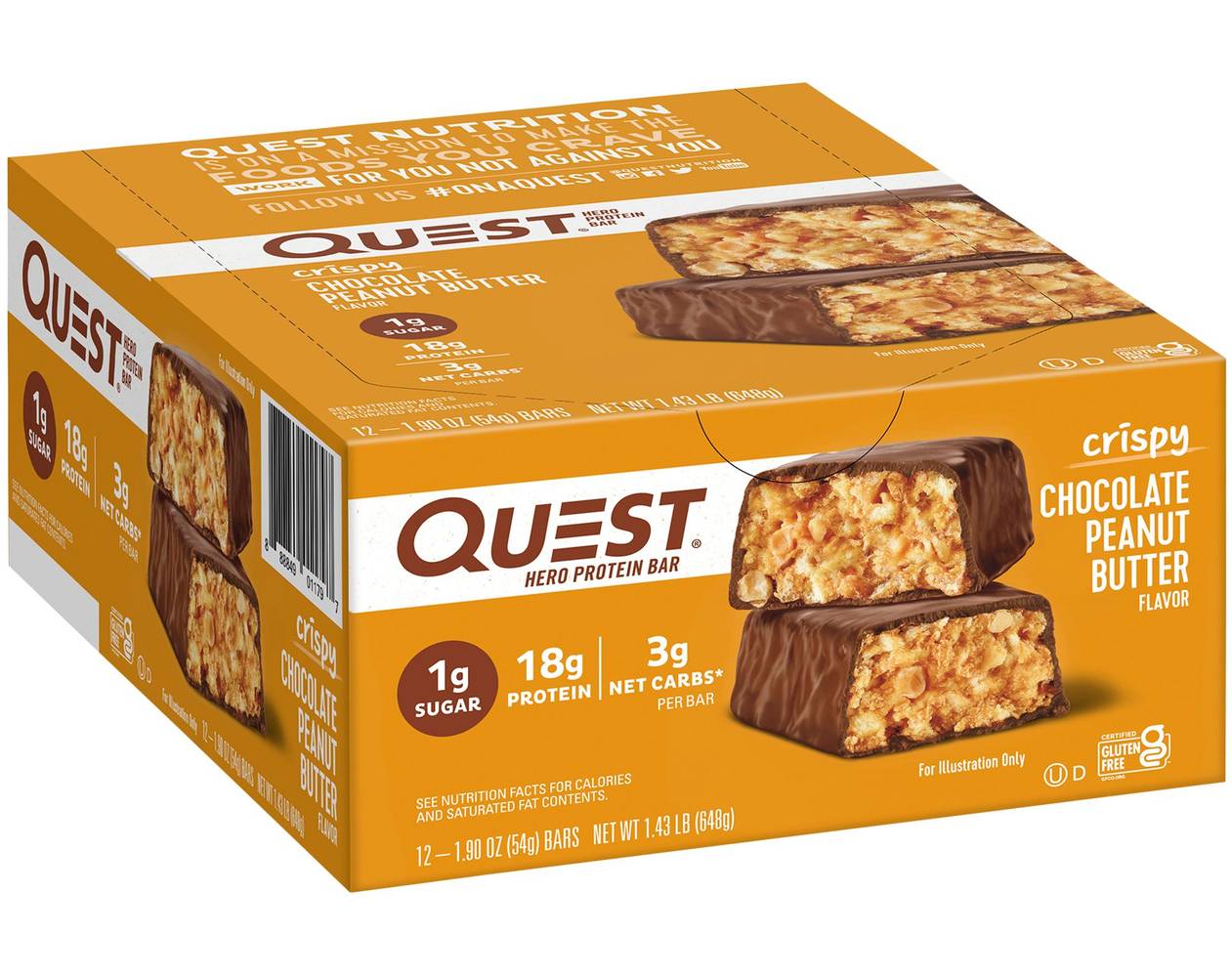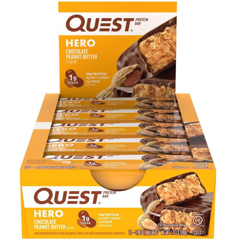 Quest Hero Protein Bar - Chocolate Peanut Butter18g Protein5g Fiber3g Net Carbs
