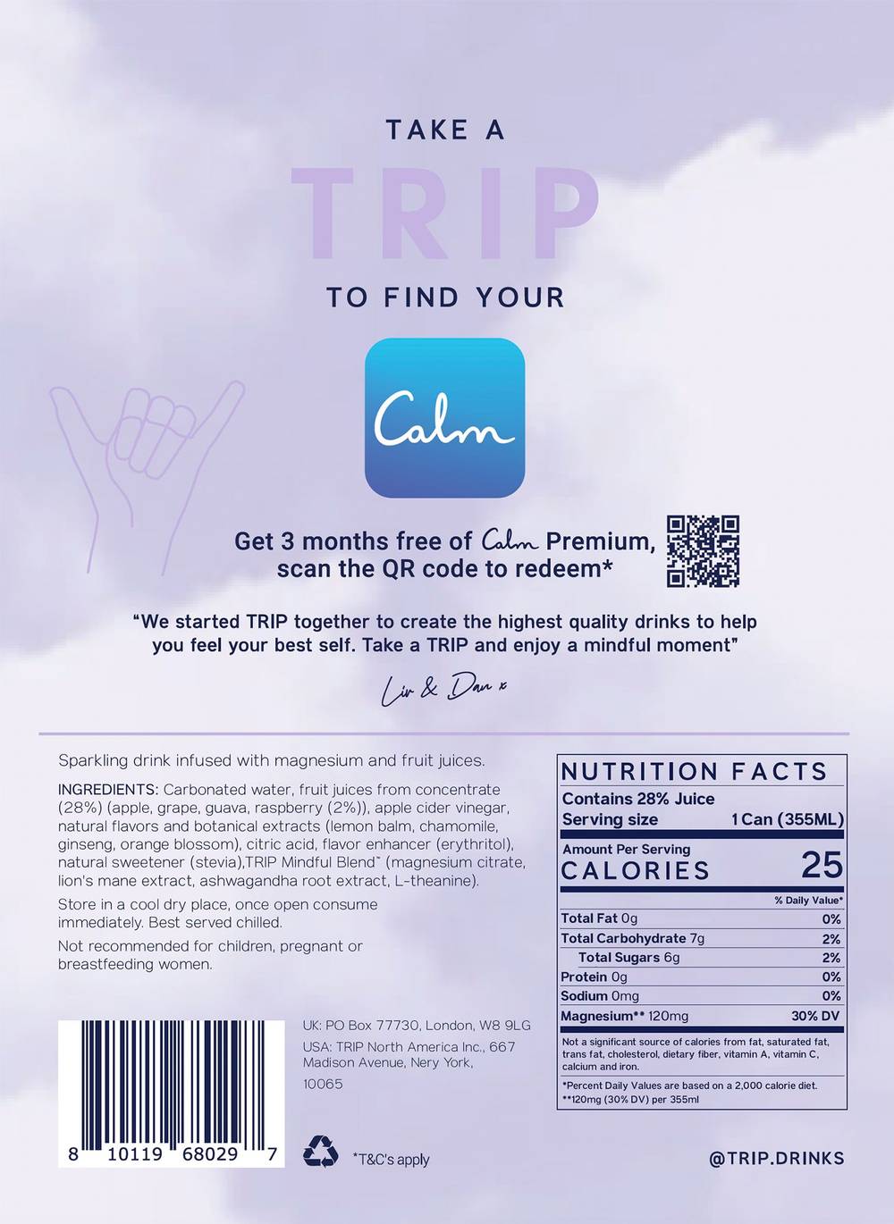Sparkling drink infused with magnesium and fruit juices. 120 MG magnesium. 100 MG Lion's Mane. 25 Kcals Packaging: Reusable