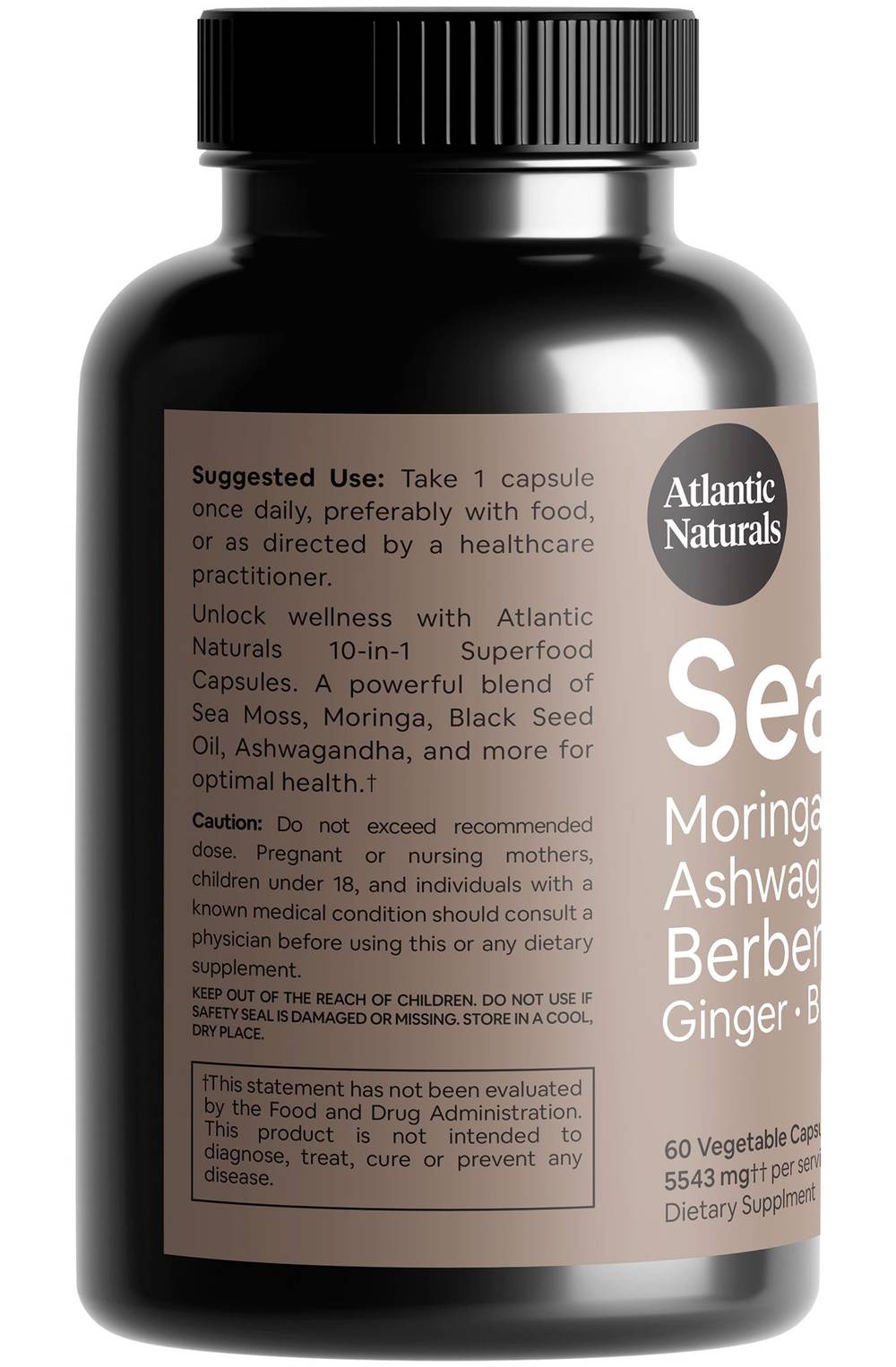 Sea Moss With Moringa, Black Seed Oil & Berberine - 10-In-1 Superfood Blend (60 Capsules)