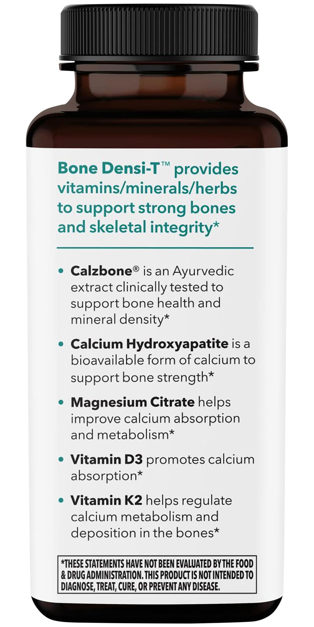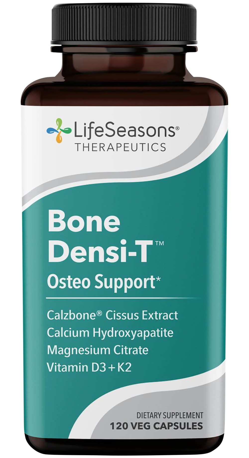 LifeSeasons Bone Densi-T is a comprehensive bone health formula designed to support bone strength, density, and structural integrity through a synergistic blend of bioavailable nutrients. Featuring clinically studied Calzbone along with calcium, magnesium citrate, vitamin D3, and vitamin K2, this daily supplement promotes calcium absorption, supports healthy bone metabolism, and helps maintain mineral balance and flexibility in bone tissue. Formulated for daily use with meals, Bone Densi-T offers a well-tolerated, non-chalky alternative to traditional calcium supplements, supporting the body's natural bone remodeling processes as part of a healthy lifestyle.