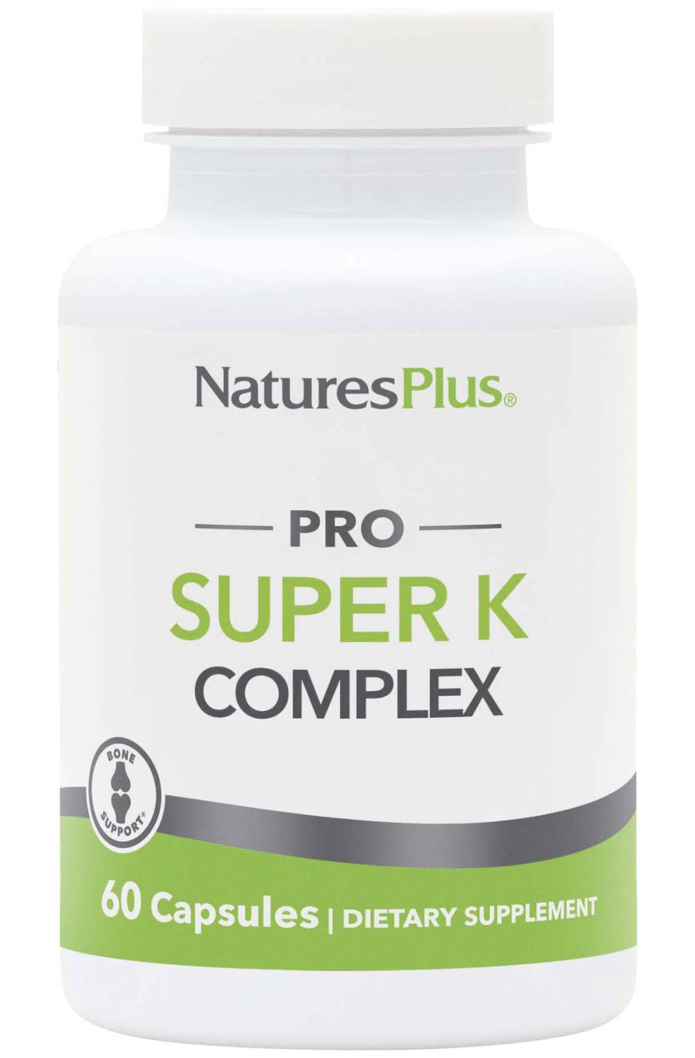 NaturesPlus Super K Complex uniquely combines all 3 types of Vitamin K at specific ratios and higher potencies to maximize overall activity and to provide balanced utilization. Vitamin K1 (phylloquione) is abundant in dark leafy green veggies like spinach and kale, while Vitamin K2 as MK-4 (menatetrenone) and Vitamin K2 as MK-7 (menaquinone) are found in fermented foods and produced in the gut.