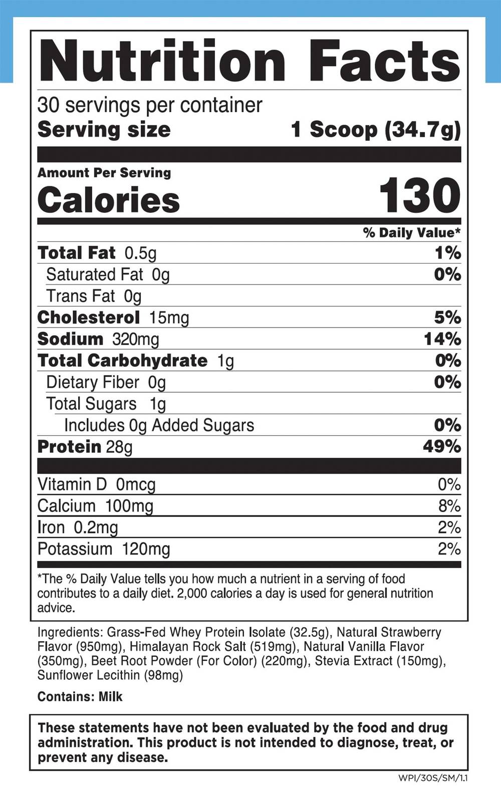 100% Grass-Fed Whey Protein Isolate Powder Strawberry Milkshake (2.28 Lbs./30 Servings)