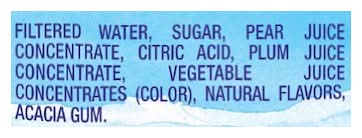 Ingredients: Filtered Water, Sugar, Pear Juice Concentrate, Citric Acid, Plum Juice Concentrate, Vegetable Juice Concentrates (Color), Natural Flavors, Acacia Gum