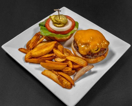 1/2 lb burger hidden beneath melted Cheddar cheese, chili, and jalapenos.