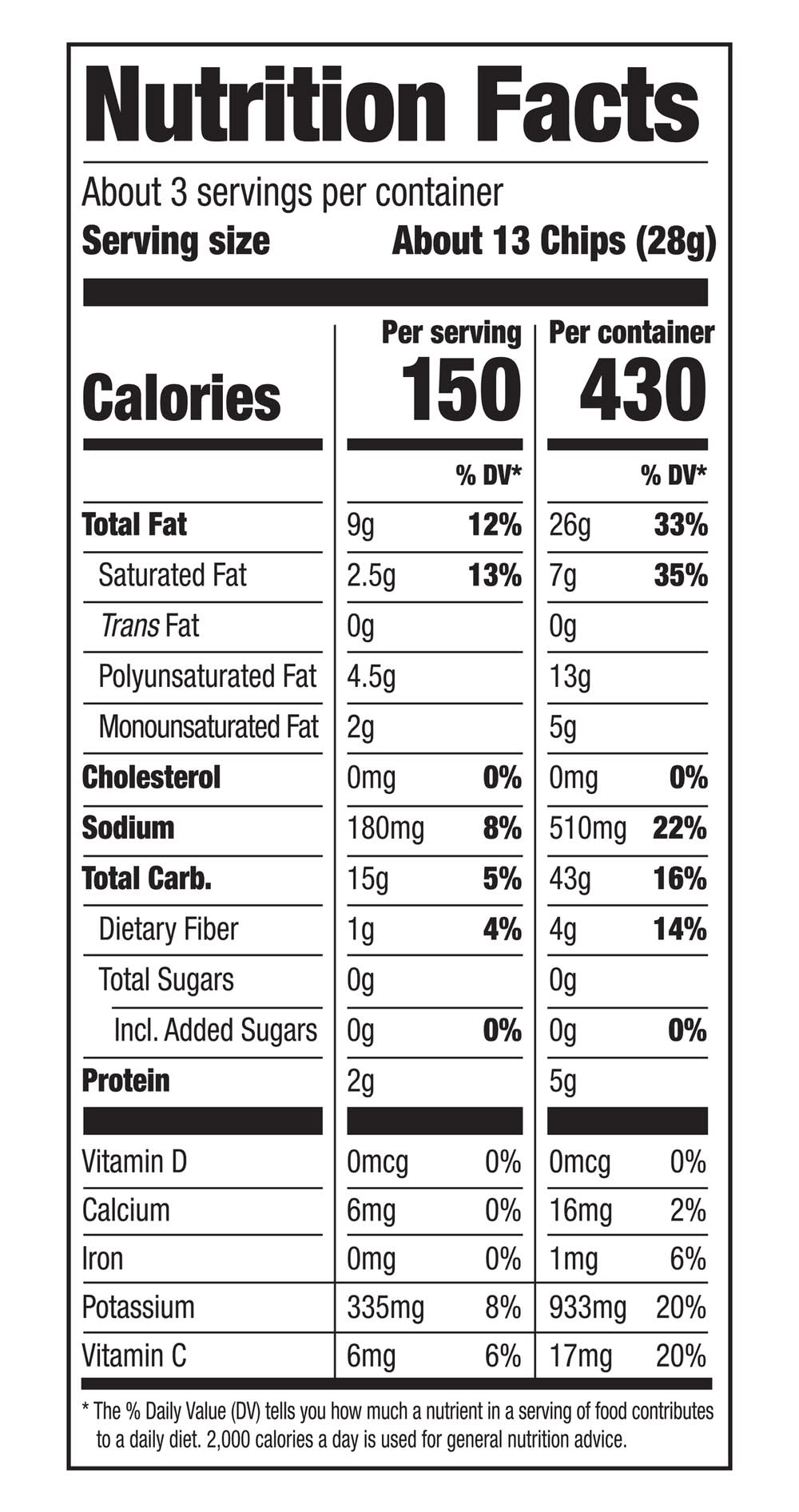 Gluten Free Crisp 'N Tasty Plain Potato Chips Number of servings: 3