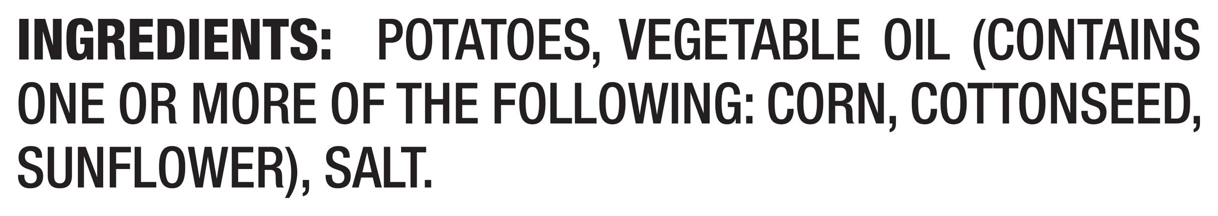Ingredients: Potatoes, Vegetable Oil (Contains One or More of the Following: Corn, Cottonseed, Sunflower), Salt Contains: 'Contains Soybeans'