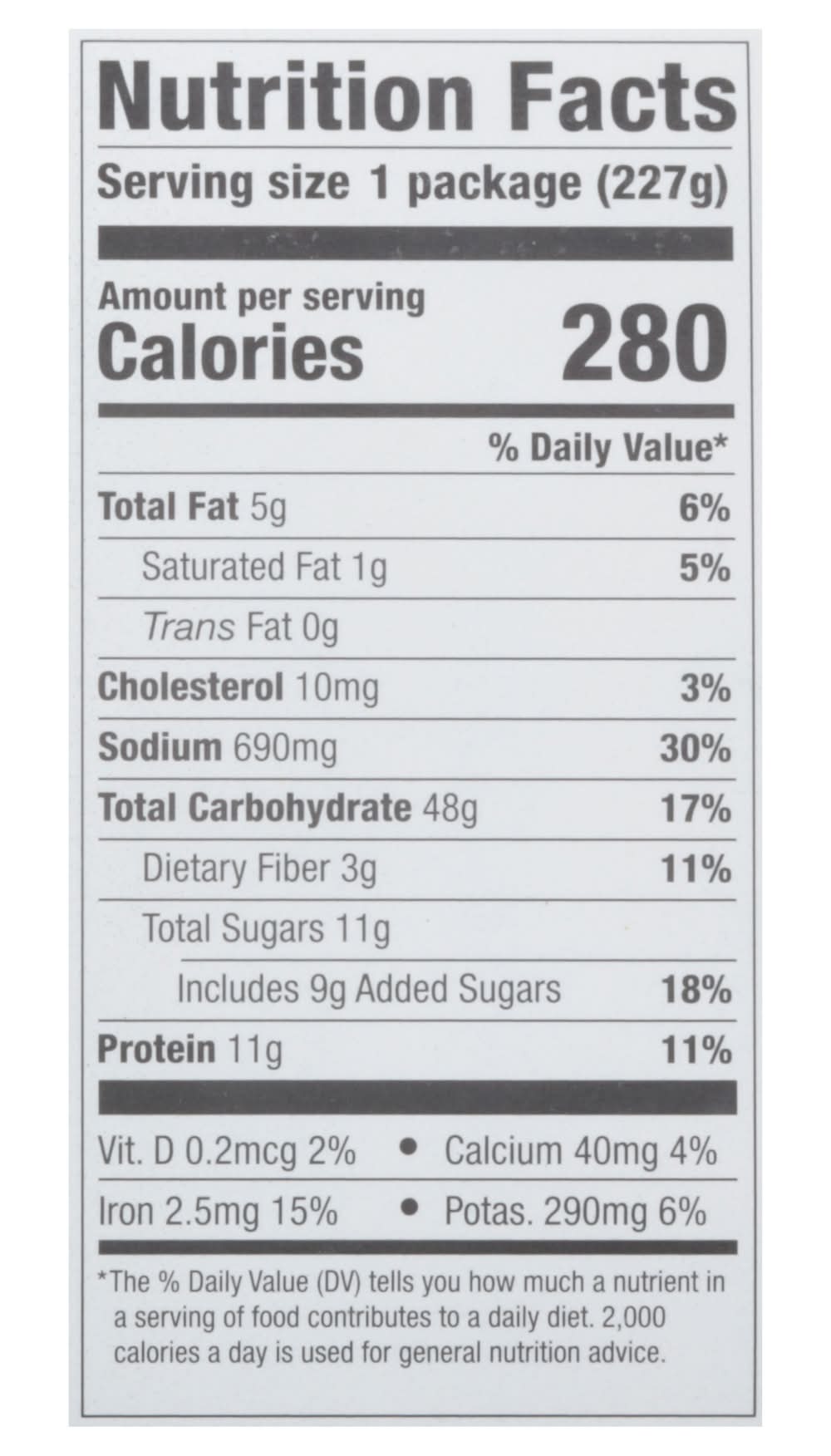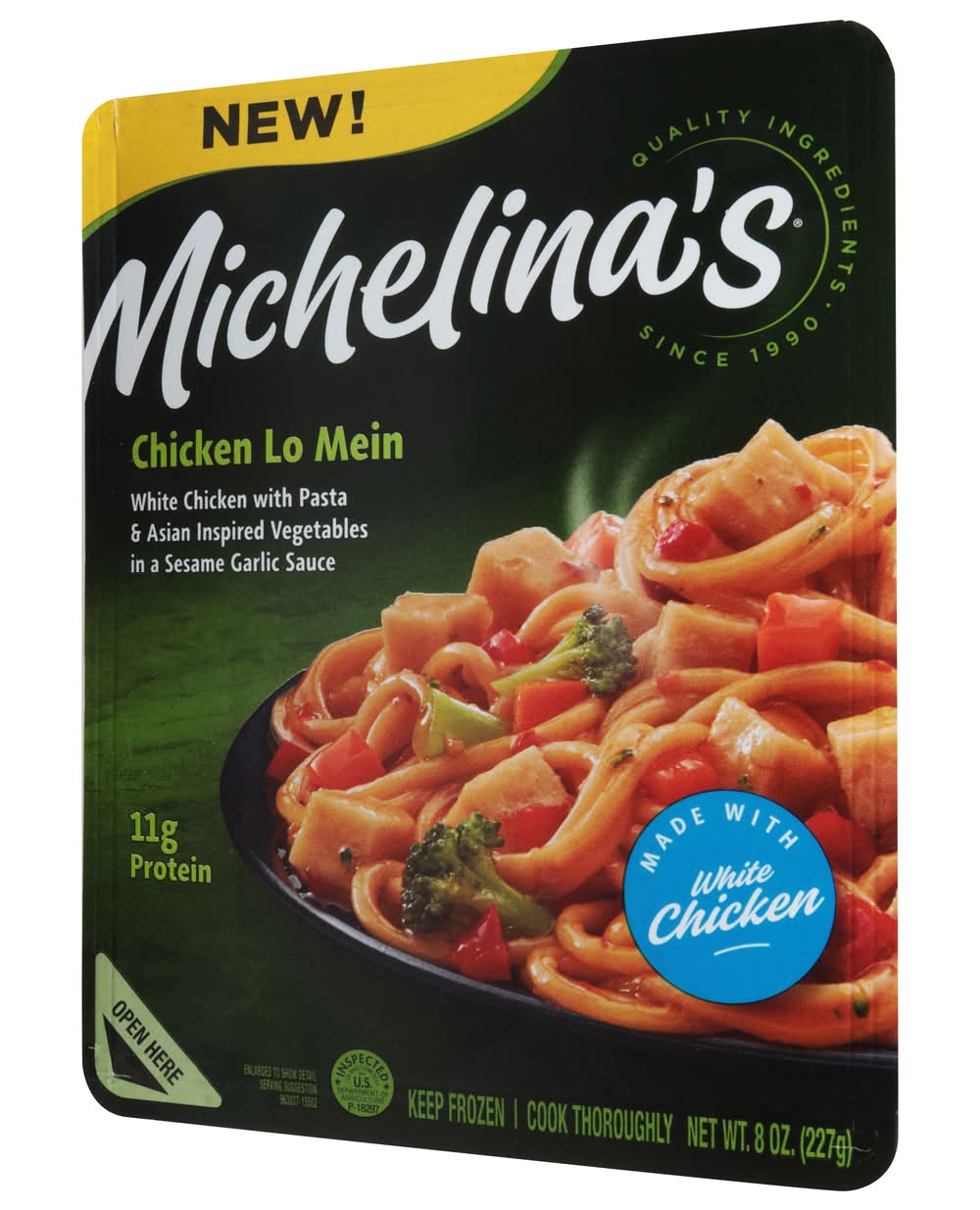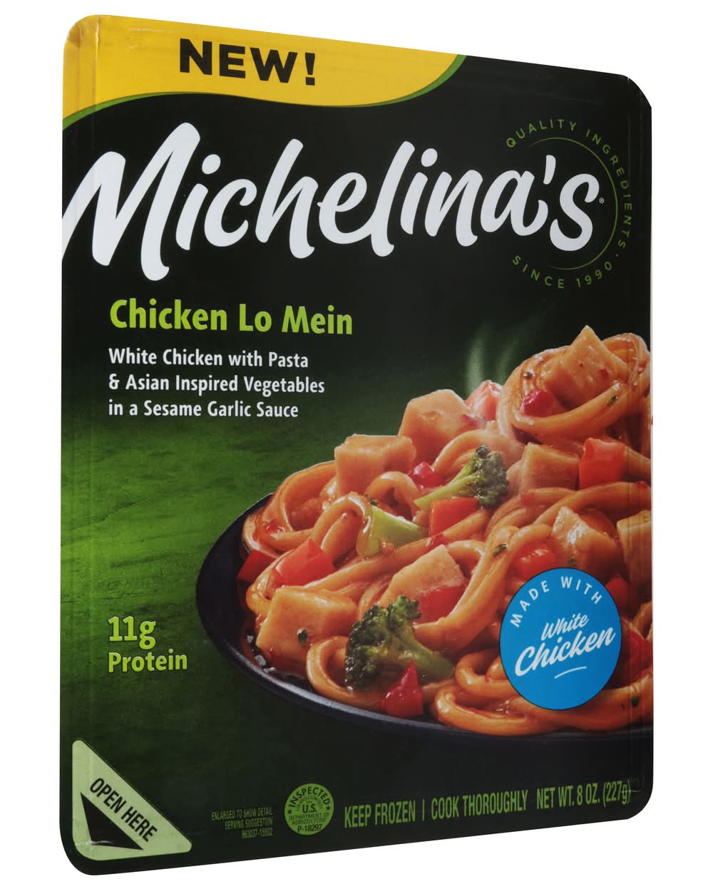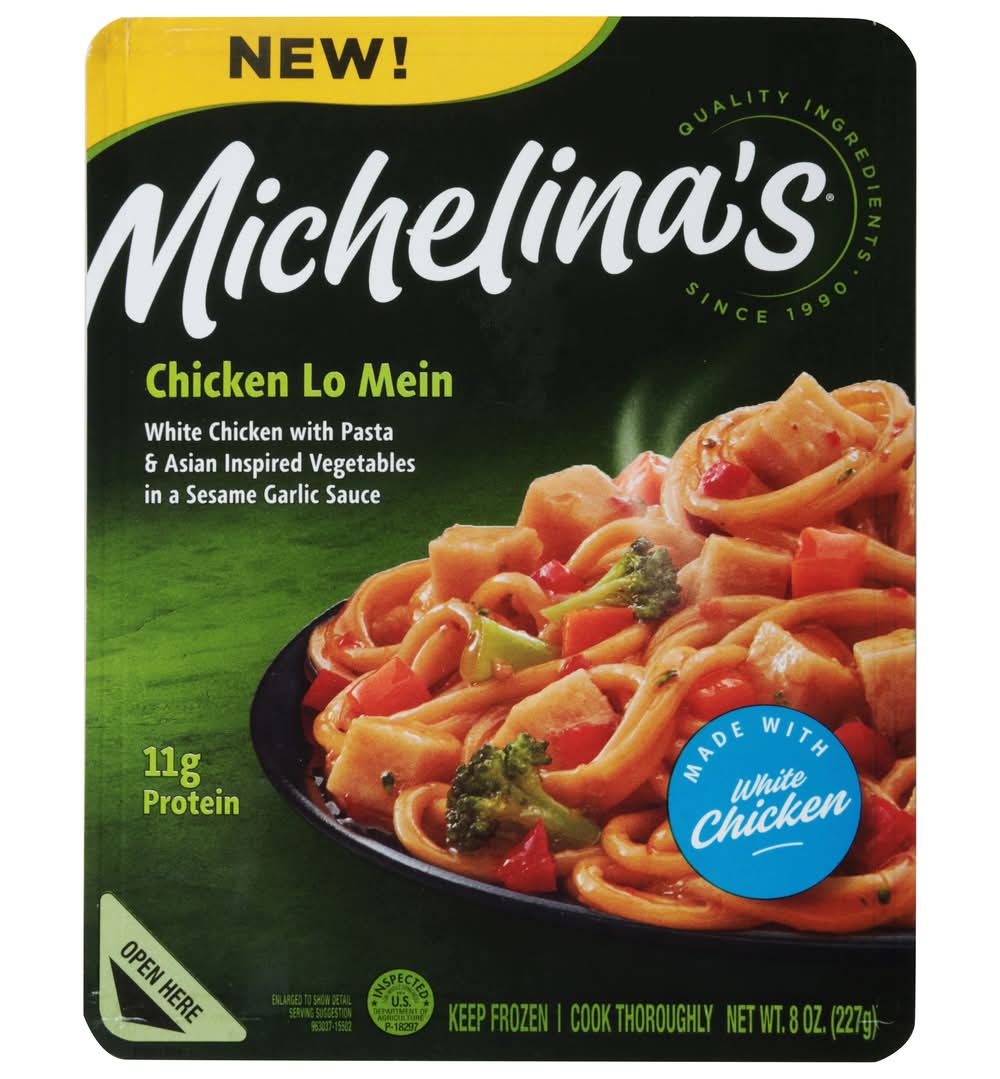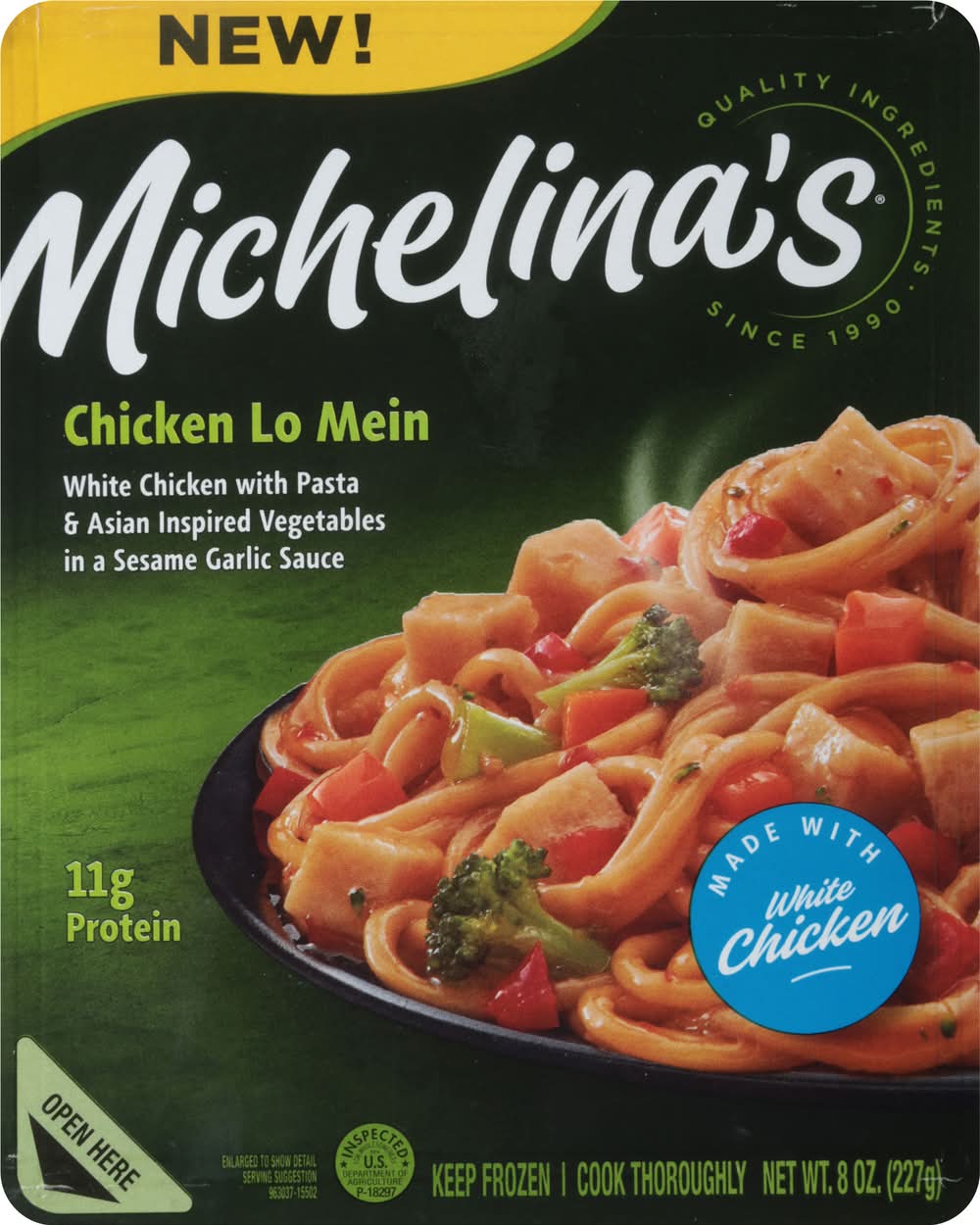 White chicken with pasta & Asian inspired vegetables in a sesame garlic sauce. 11 g protein. Contains bioengineered food ingredients.