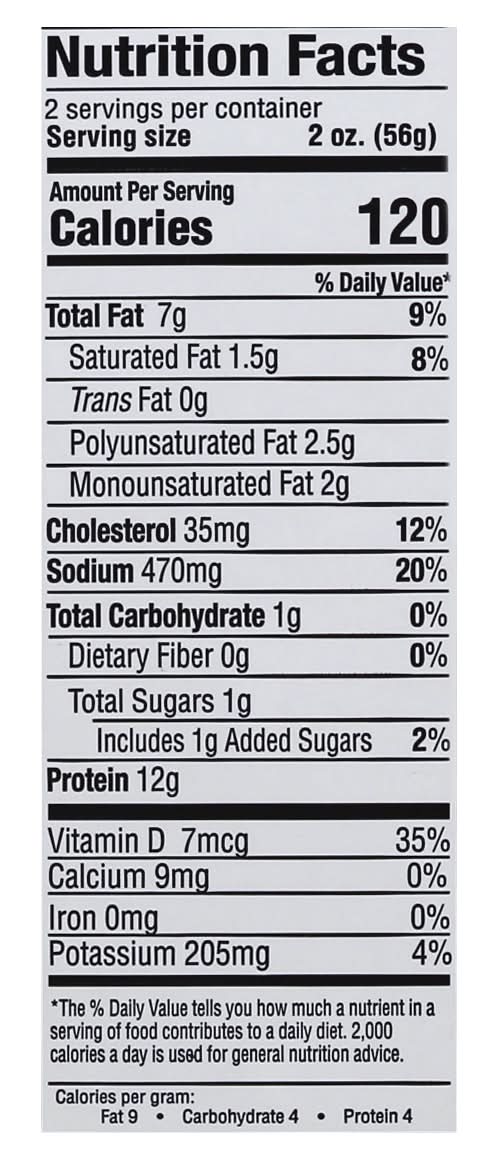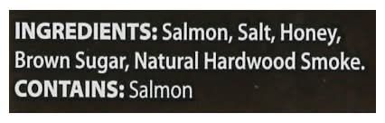 Ingredients: Salmon, Salt, Honey, Brown Sugar, Natural Hardwood Smoke Contains: Fish