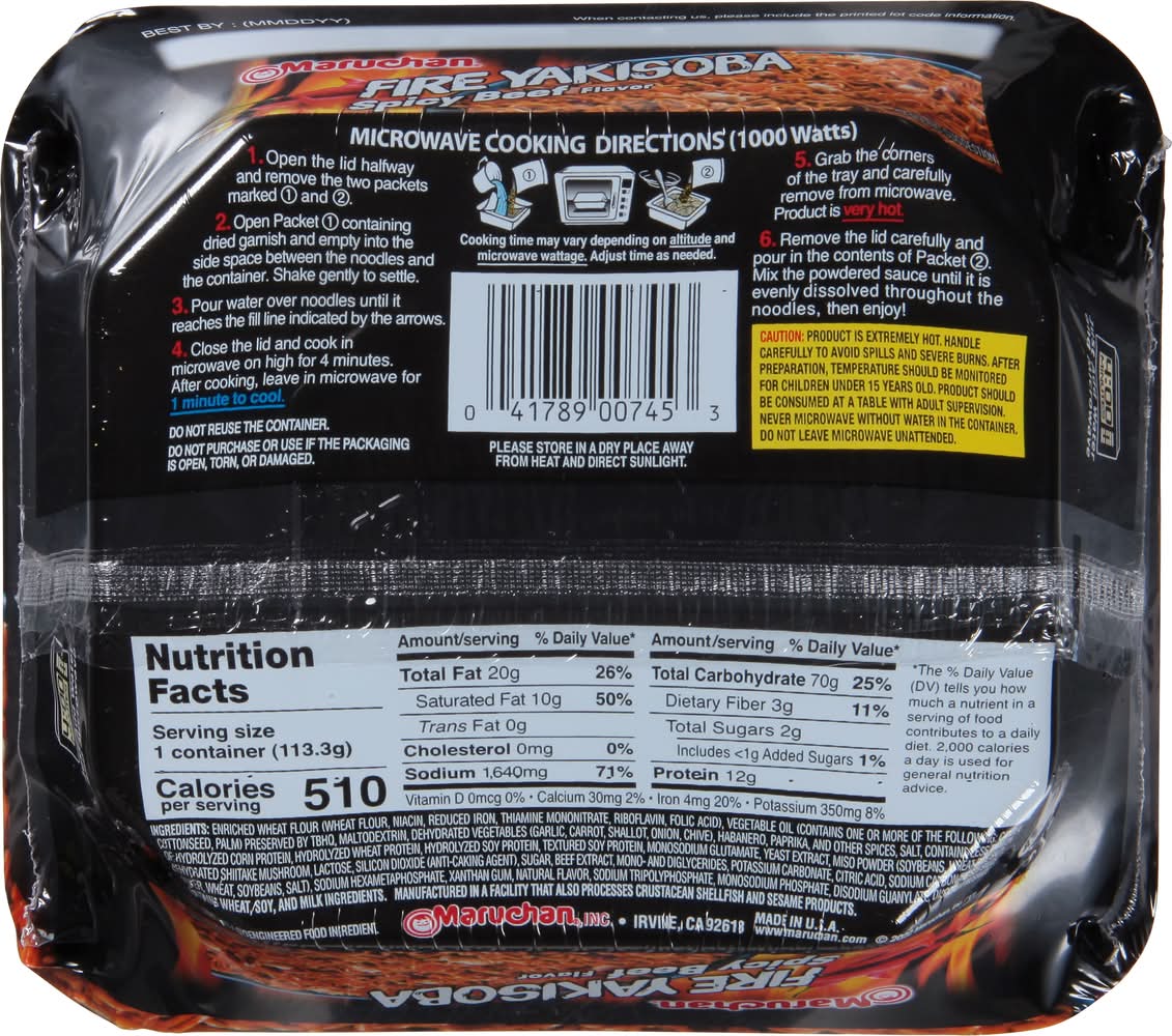 Maruchan Fire Yakisoba Noodles, Spicy Beef (3.99 oz)