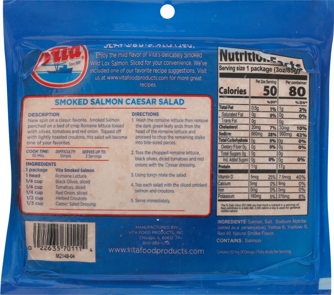 Salmon, Wild Lox, Deli Sliced-Smoked Vita Food Products, Chicago, IL, 60612, Ph: 800-989-VITA