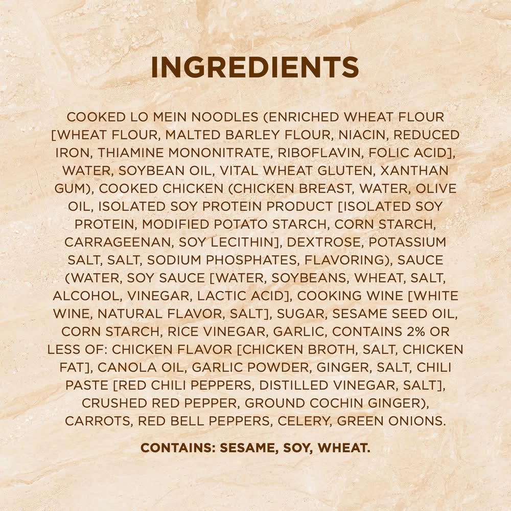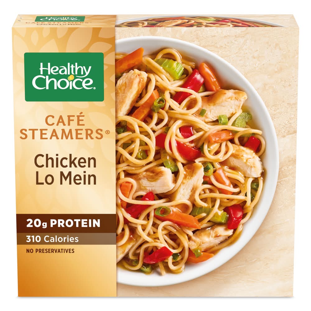 Enjoy a delicious single serve meal inspired by your favorite takeout Chinese food with Healthy Choice Café Steamers Chicken Lo Mein. This prepared meal features the perfect balance of tasty and healthy with freshly made lo mein noodles, grilled chicken breast and vegetables in a savory soy sauce. Each frozen dinner is made with no preservatives, 20 grams of protein and 310 calories per meal. Savor every bite of this convenient microwave meal that's easy to prepare in just a few minutes. Perfect for quick weeknight dinners, filling lunches or anytime you are craving a meal inspired by classic Asian food. Stock up on Healthy Choice Café Steamers for convenient and satisfying frozen meals that you can feel good about.