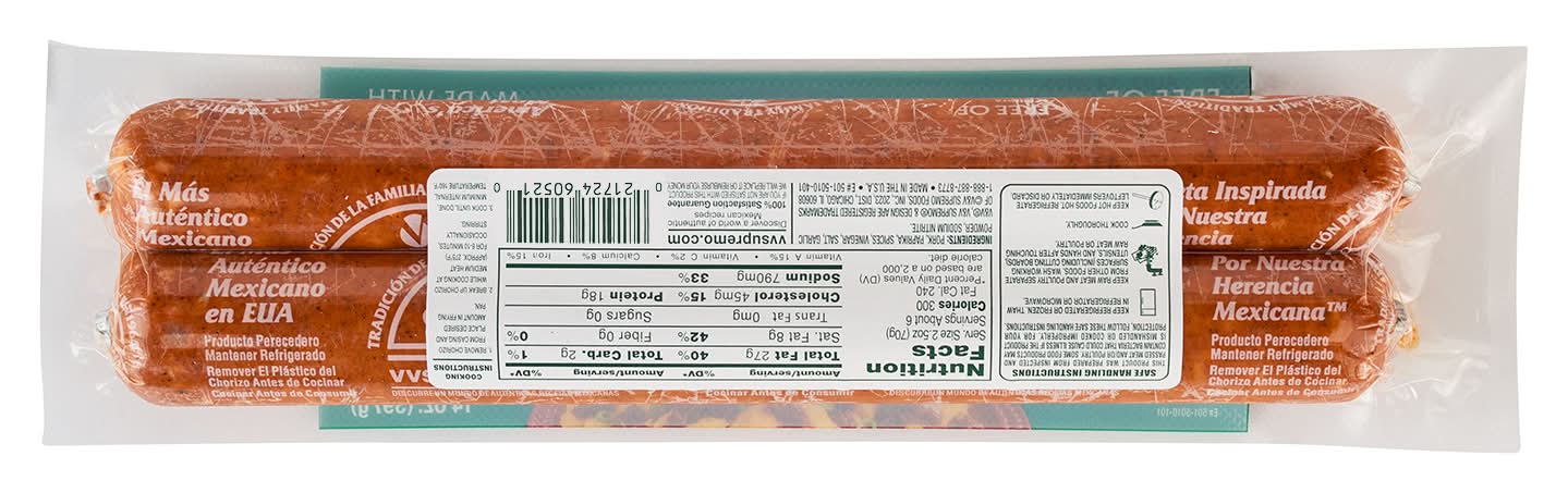 traditional Mexican sausage is a blend of fine spices and fresh lean meat with no fillers. Robust in flavor with a crumbly texture. Add to eggs, refried beans, potatoes, stews, beef chili, hamburgers, meatloaf, tortas, meatballs, lasagna, quesos fundidos, oven-baked meals, and more.