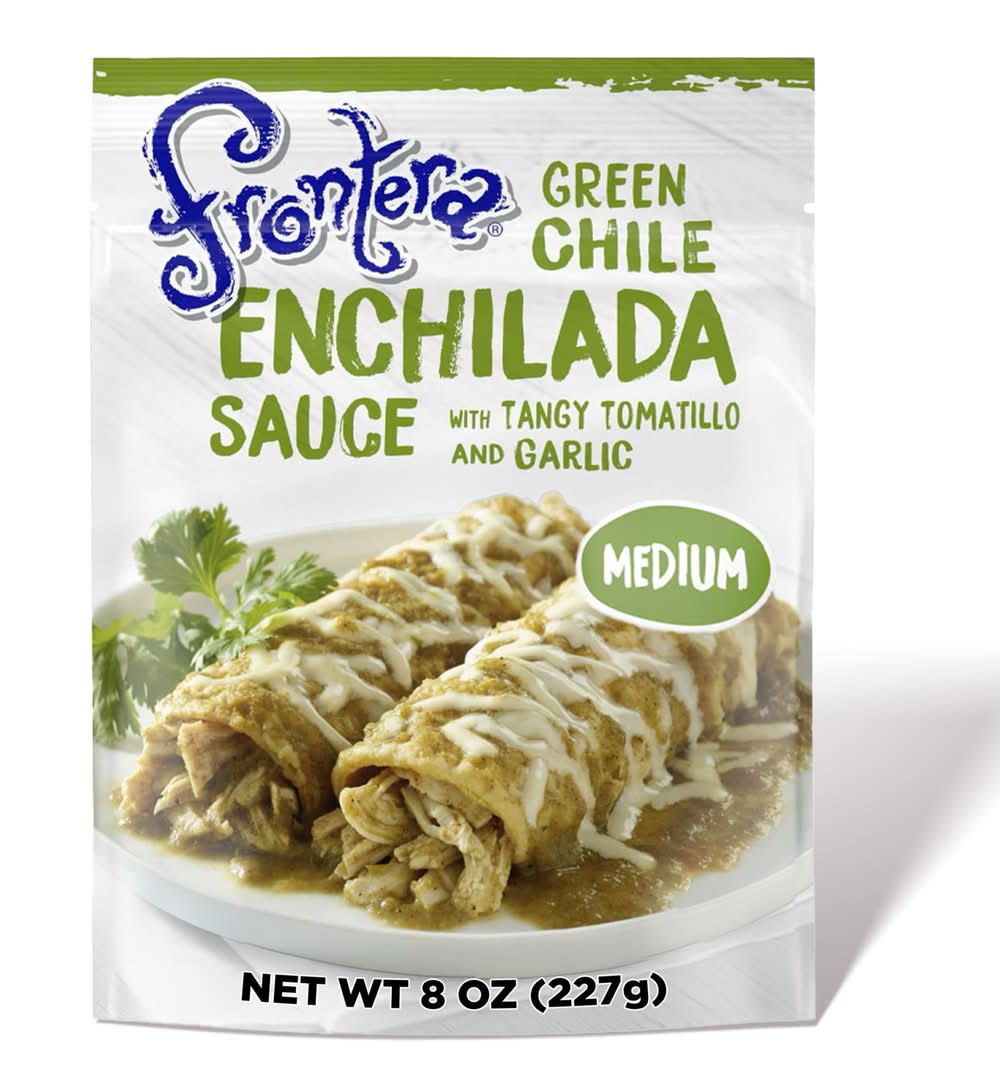 Enjoy the mouth-watering flavors of Frontera Green Chile Medium Enchilada Sauce with Tangy Tomatillo and Garlic. This green chile sauce marries the tart, rich taste of fire-roasted tomatillos and green chiles with fire-roasted poblano peppers, onions and cream for a totally distinctive and delicious medium sauce. Gluten free and Non-GMO Project Verified, this enchilada sauce is a tasty choice for the whole family. Enchiladas ready in 15 minutes, all you have to do is add the spicy sauce to corn tortillas with shredded cheese and cooked chicken or beef for delicious enchiladas, or use it to prepare casseroles and one skillet meals. Made in small batches with the right blend of seasonings and authentic ingredients, each Frontera Mexican cooking sauce is a masterpiece. Frontera: Gourmet Mexican Cuisine. Congra Brands, PO Box 3534, Chicago,IL, 60654