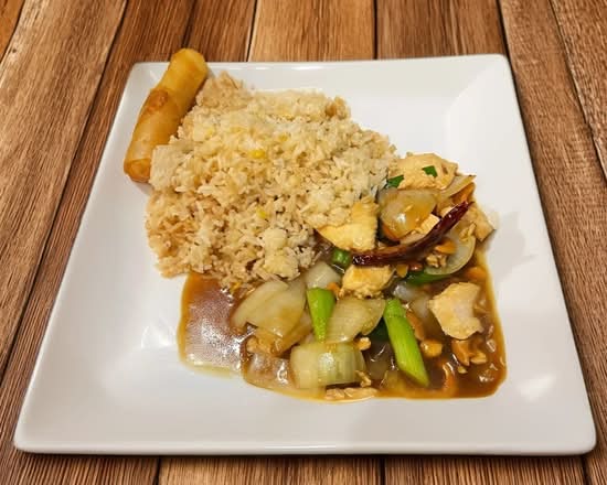 Served with a choice of steamed or fried rice and an egg roll. Extra veggies and sides are for an additional charge.
