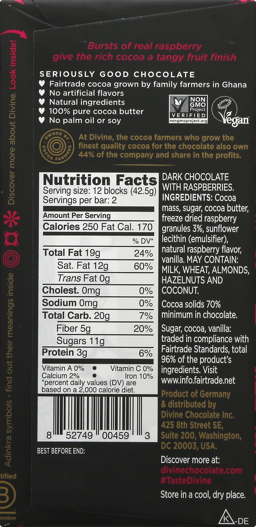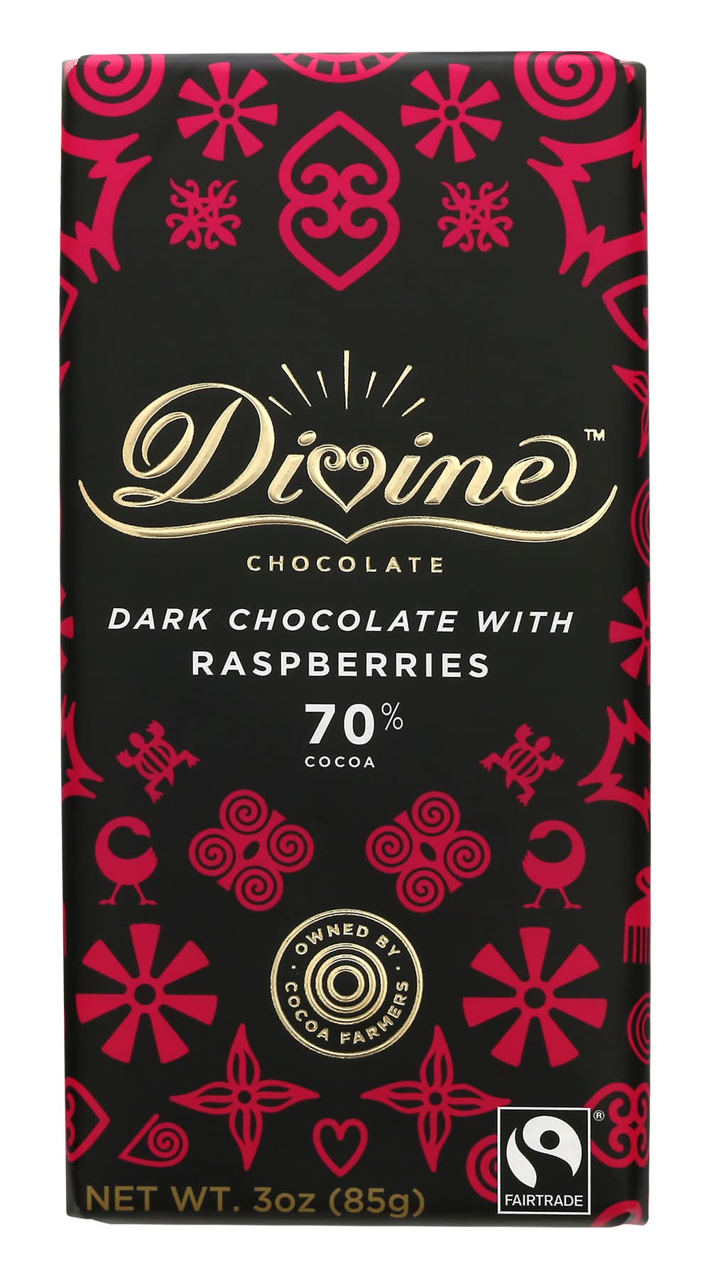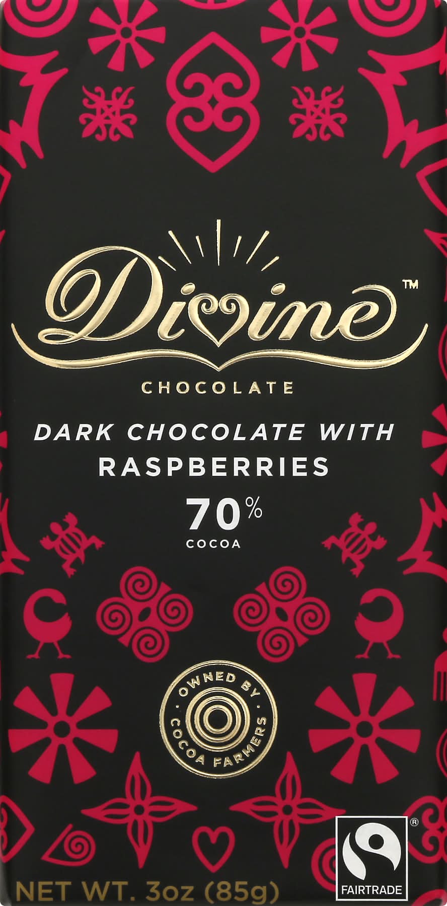 Divine Dark Chocolate With Raspberries 70% Cocoa (3 oz)