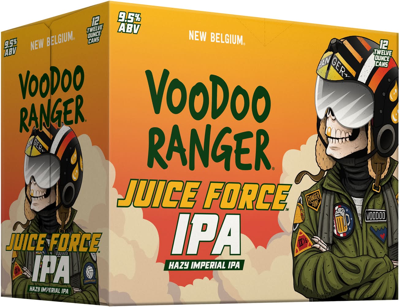 Voodoo Ranger Juice Force Hazy Imperial IPA is a fruit forward, highly drinkable blast. It's a IPA that'll send your tastebuds soaring with its brilliant flavor. It is equal parts hazy and fruit forward, making it a balanced yet bold craft beer. This craft IPA pours a cloudy golden-orange and is rich with bright tropical fruit flavors that have just the right amount of juiciness. Brewed by New Belgium Brewing, a certified B-Corp. • Pack size: 12 • Features : kosher • Alcohol by volume: 9.5%