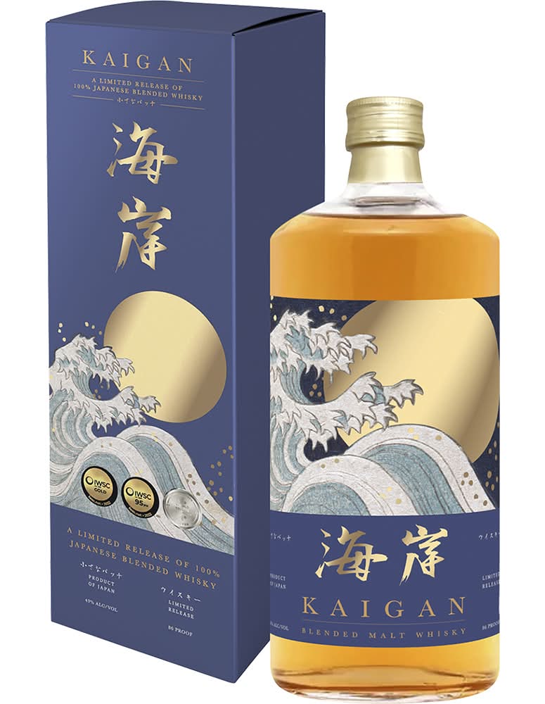 Kaigan Japanese Whisky is crafted using 100% Japanese whisky. It boasts a deep golden color and emits an aroma highlighted by fresh oak and citrus fruits. The tasting profile of this whisky reveals notes of sweet honey and vanilla, culminating in a finish that is rich and bold. Alcohol by volume: 43%