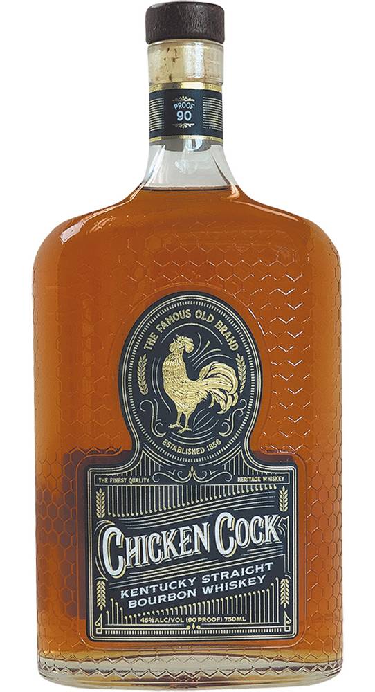 Originally established in 1856 in Paris, Kentucky, Chicken Cock quickly became one of the larger bourbon brands of the 19th century. Forced to move production to Canada when Prohibition started, Chicken Cock was smuggled across the border in tin cans, where it rose to fame as a popular serve at some of the era’s most famous speakeasies, including the legendary Cotton Club in Harlem. At the Cotton Club, when patrons ordered a “Chicken Cock,” waiters would present the tin can tableside and ceremoniously open it to reveal the bottle of Chicken Cock Whiskey inside. Duke Ellington writes about Chicken Cock in his memoirs, referring to the “brand that was served in a tin can.” At a rumored bottle Chicken Cock wasn’t for the light of pocket, but it was a small price to pay to secure a prime table near some of the greatest musicians of the era. After prohibition, multiple attempts were made to bring “the famous old brand” back to its former glory, but shifting drinking habits caused it, along with many significant American Whiskey brands of the 19th and early 20th centuries, to disappear. It is thus with great pride that we have the honor to reintroduce to the world this once famous (and we hope soon to be famous again) brand, paying homage to its great history while embracing the future with a bold new look and flavor. To help provide the necessary assistance and guidance toward resurrecting this high quality whiskey and re-establishing its once famous reputation, Grain and Barrel Spirits hired the services of long time industry veteran, Gregg Snyder, as the Master Distiller and Blender for Chicken Cock Whiskey. Through Gregg's years of vast experience and knowledge, not only with making high quality whiskey, but also with making high quality whiskey barrels, Whiskey is once again being recognized as one of the best whiskies available in the world. Distilled, aged, and bottled in Kentucky, Kentucky Straight Bourbon Whiskey has a rich, elegant mahogany hue color, a nose with a nice balance of oak tones with sweet notes of dried fruit, caramel and vanilla, and a taste which offers soft tannin upfront, which dissipates into delightful toasted oak lactones. At 90 proof, there is a slight bourbon heat that lets you know this is a real-deal, full-bodied bourbon. On the tongue, it evolves with a creamy, almost buttery mouth feel with sweet butterscotch notes followed by a wonderful vanilla wafer finish. The bourbon is bottled in a prohibition-era replica of the original Chicken Cock bottle. • Brand: Chicken cock • Alcohol by volume: 45% • Tasting notes: butter, caramel, creamy, dried fruit, oak, toasty, vanilla • Liquor color: yellow/amber