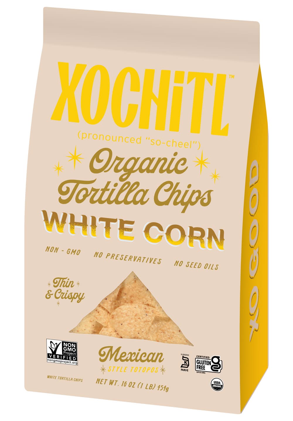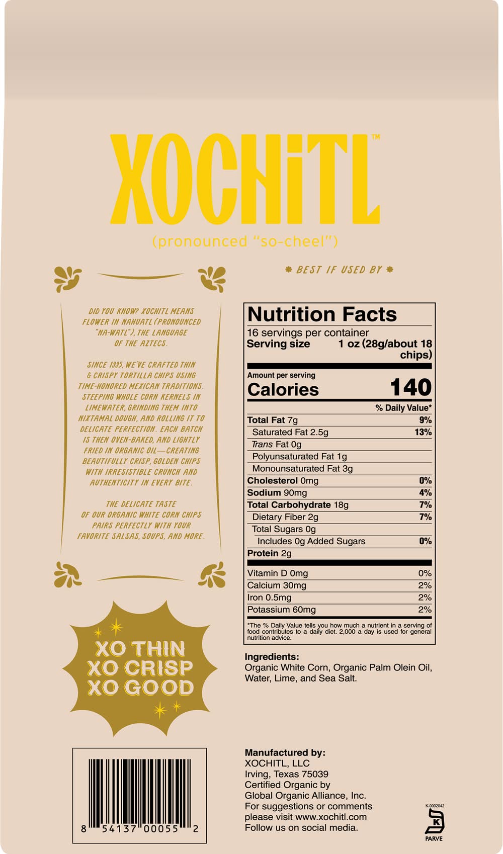 Organic Mexican Style White Sea Salt Corn Chips • Number of servings: 16 • Xochitl, Irving, Texas, 75039