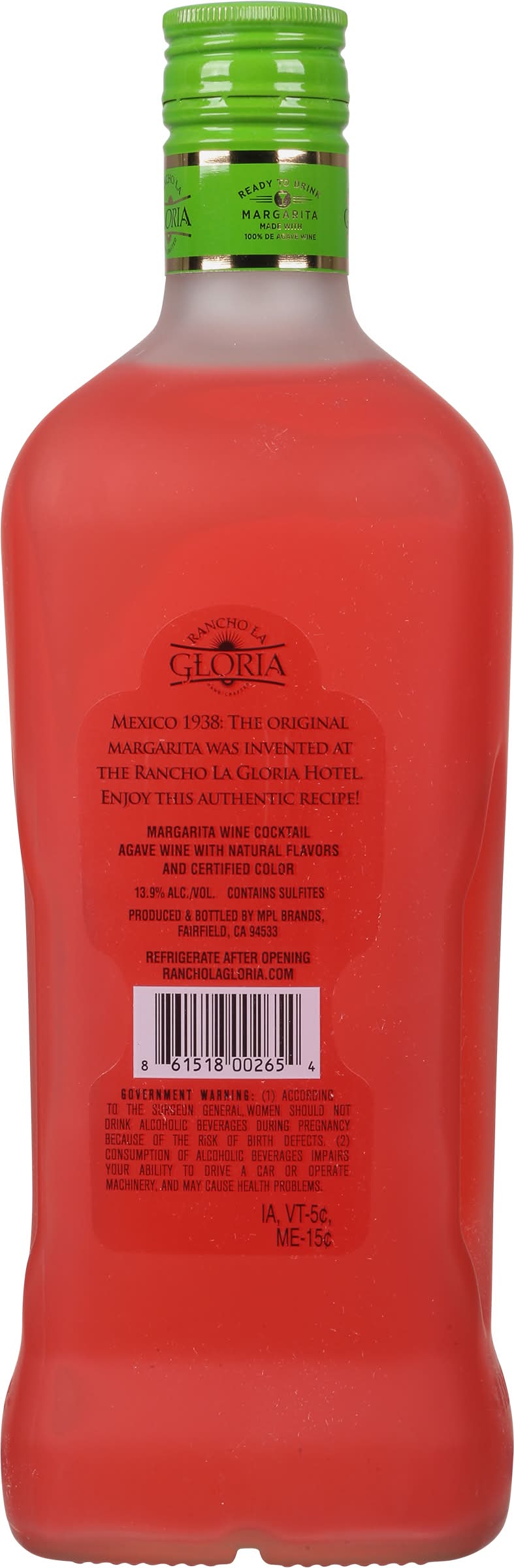 Wine Cocktail, Margarita, Strawberry • Flavor: Strawberry • Alcohol by volume: 13.9% • Mpl Brands, Mira Loma, CA 91752.