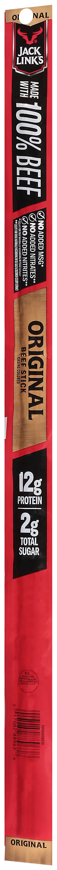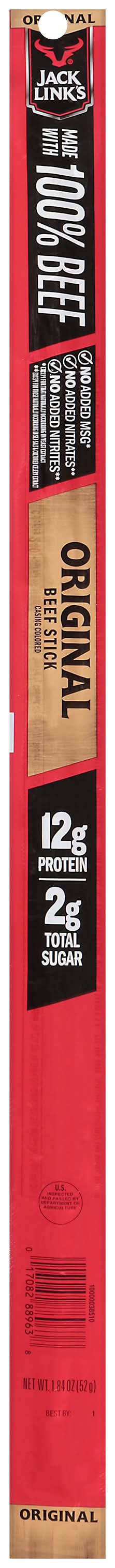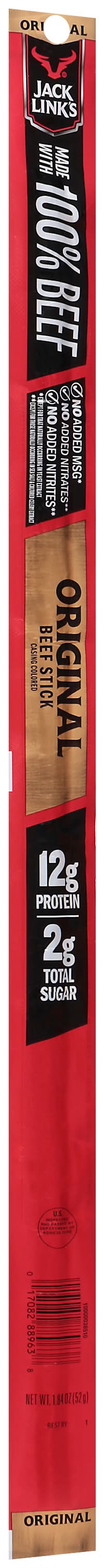 It offers a savory snacking experience with its 13 grams of protein and only 2 grams of sugar per serving. Crafted using 100% beef, this snack is free from added MSG, nitrates, and nitrites. Each beef stick is encased in a colored casing and has been inspected and approved by the U.S. Department of Agriculture to ensure quality and safety. Brand: Jack link's