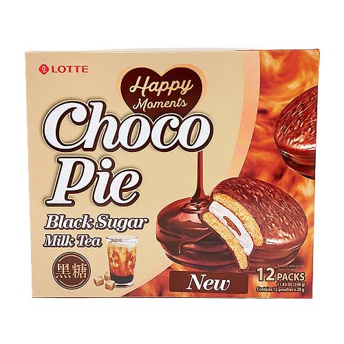 Lotte Happy Moments Chocopie Black Sugar Milk Tea (12 x 28 g)
