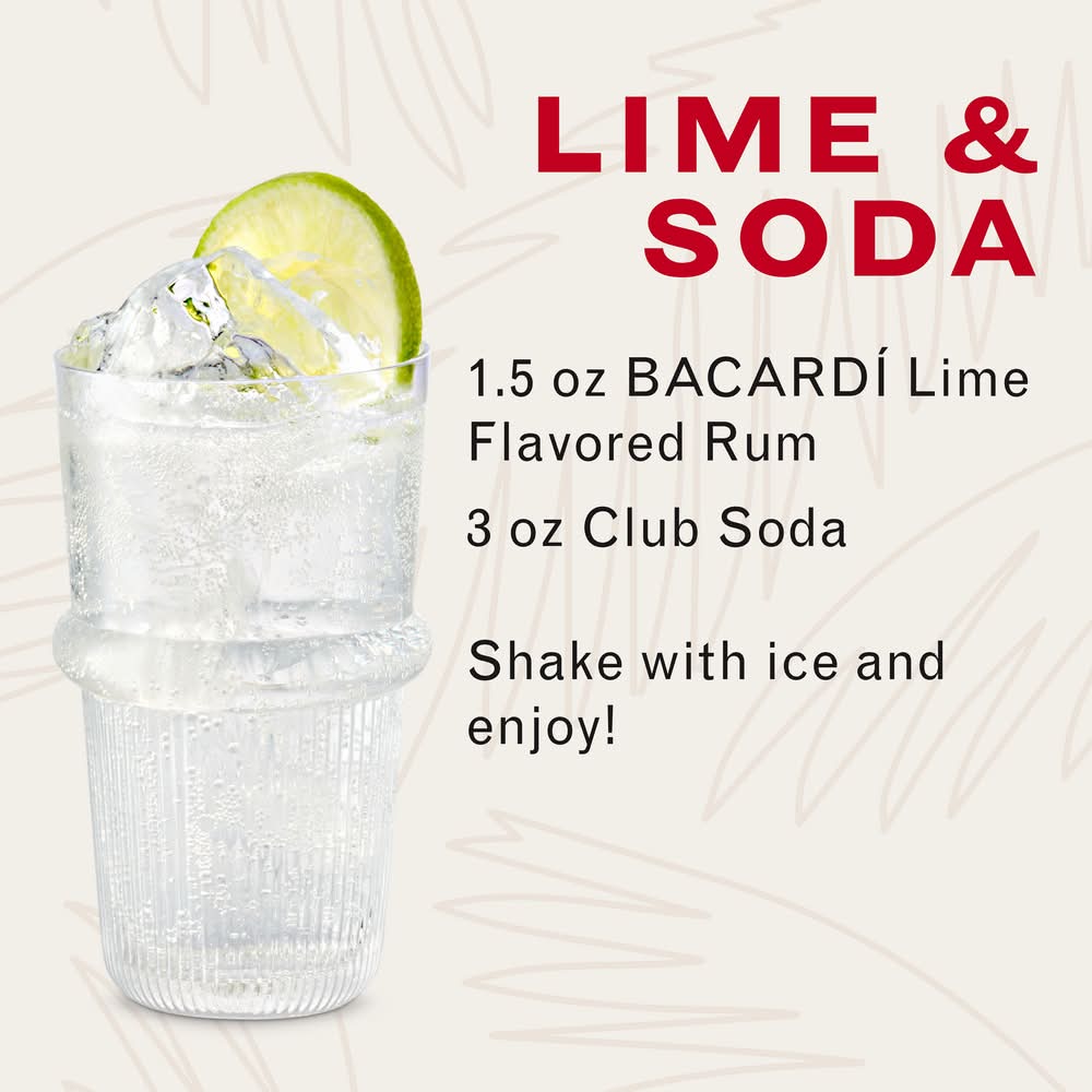 If an impromptu beach party had a flavor would be it. Our expertly blended rum delivers the zest. Simply add it to your favorite beverage and let the dancing begin! • Flavor: Lime • Alcohol by volume: 35% • Bacardi , Jacksonville,FL,32218 • Packaging: Reusable