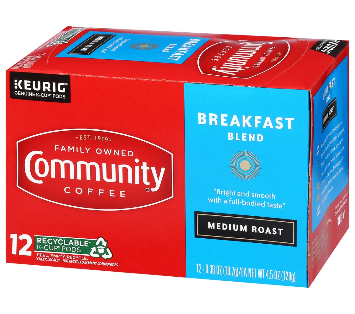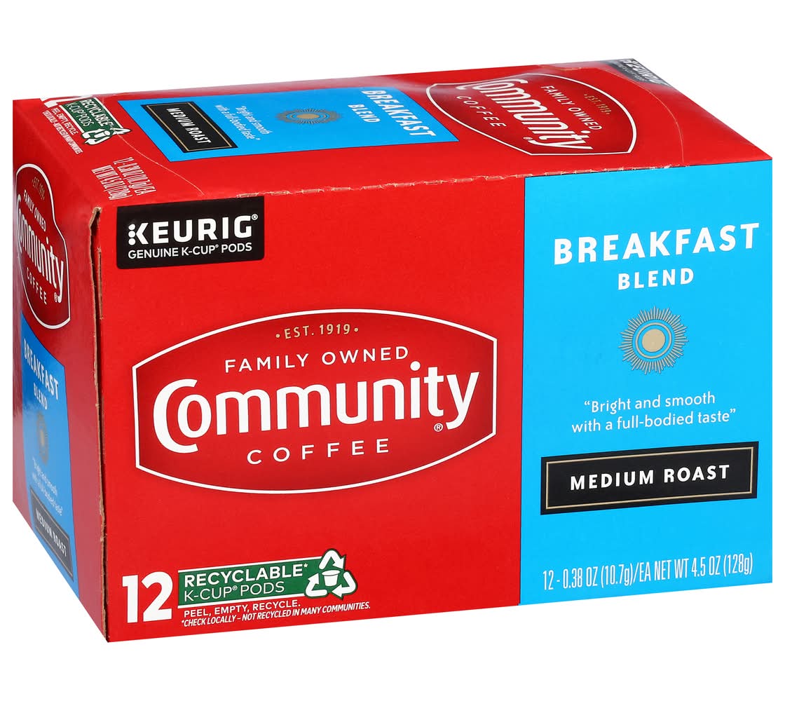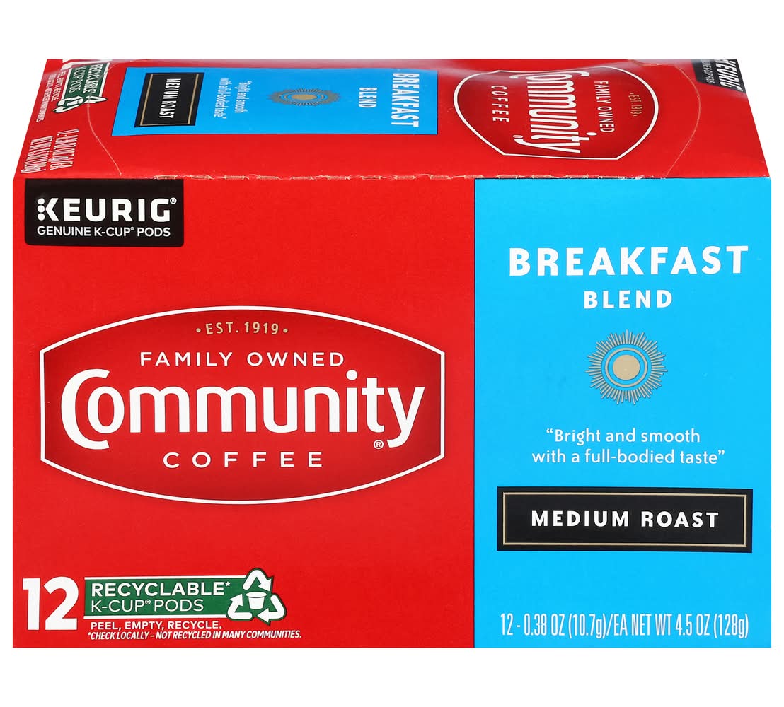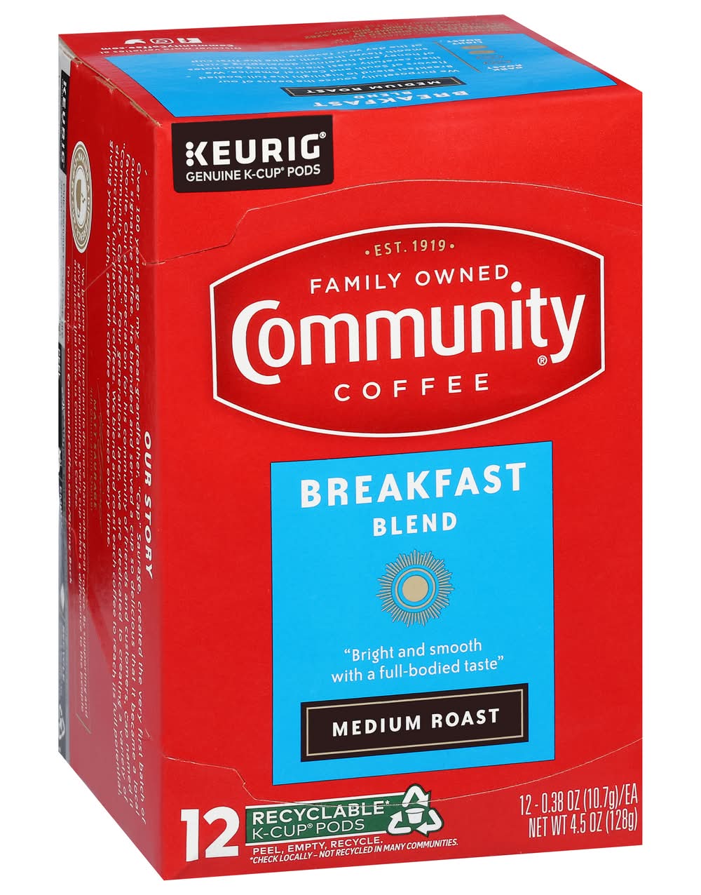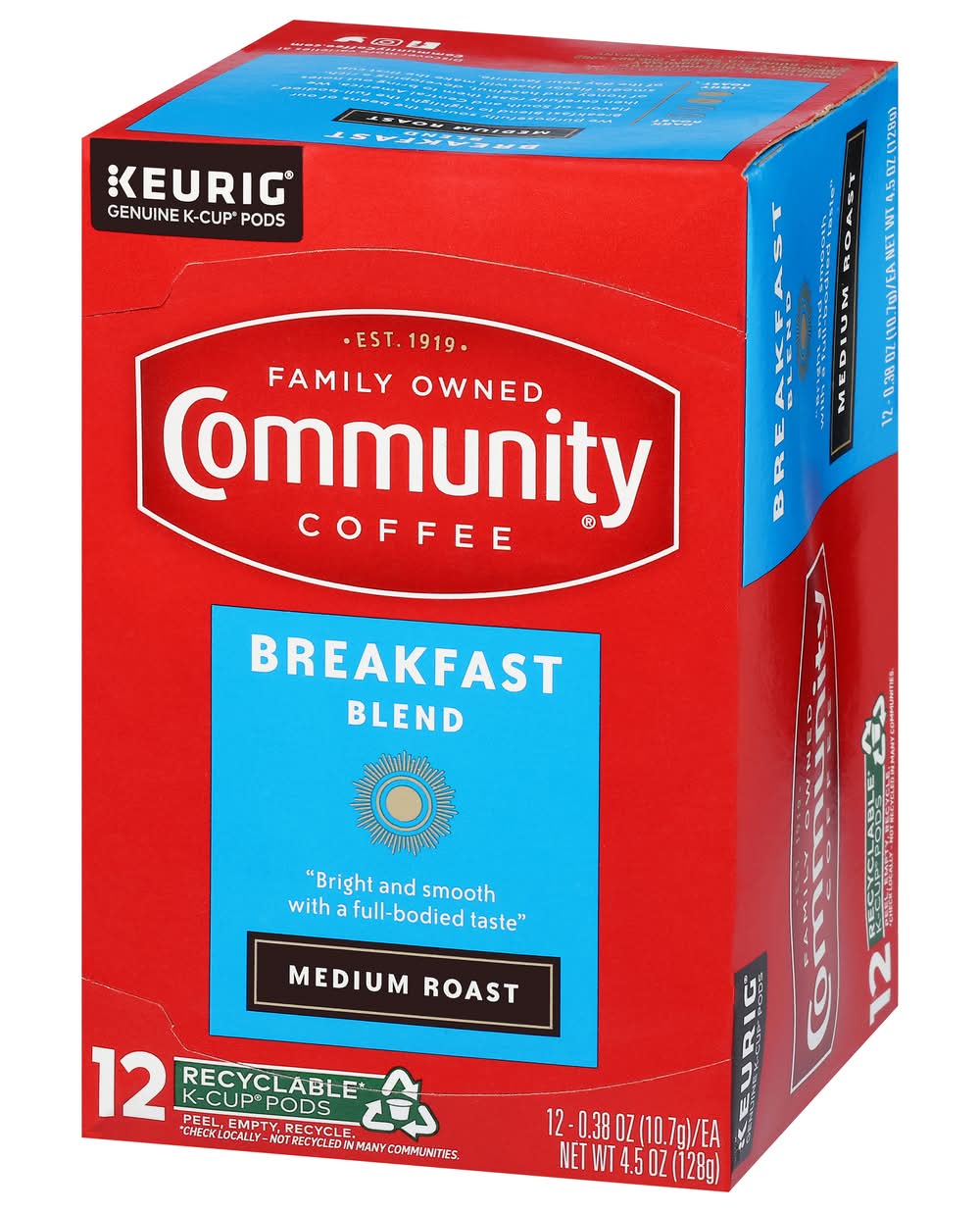 Coffee, Medium Roast, Breakfast Blend, K-Cup Pods • Community Coffee Company, Baton Rouge,LA,70809 • Packaging: Reusable