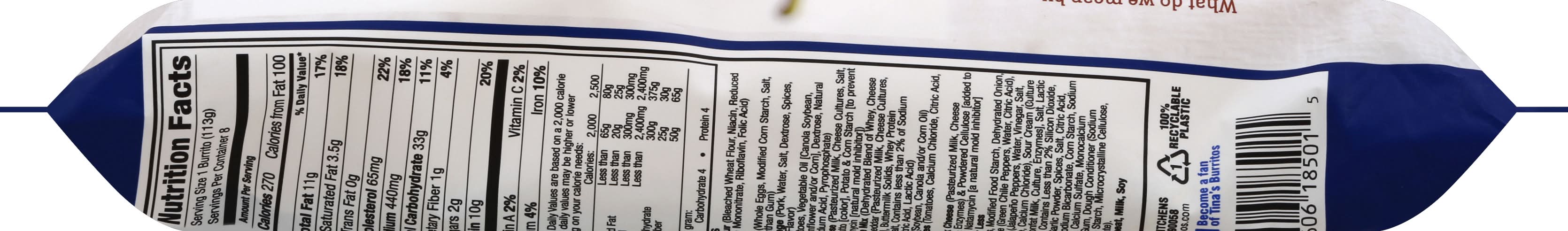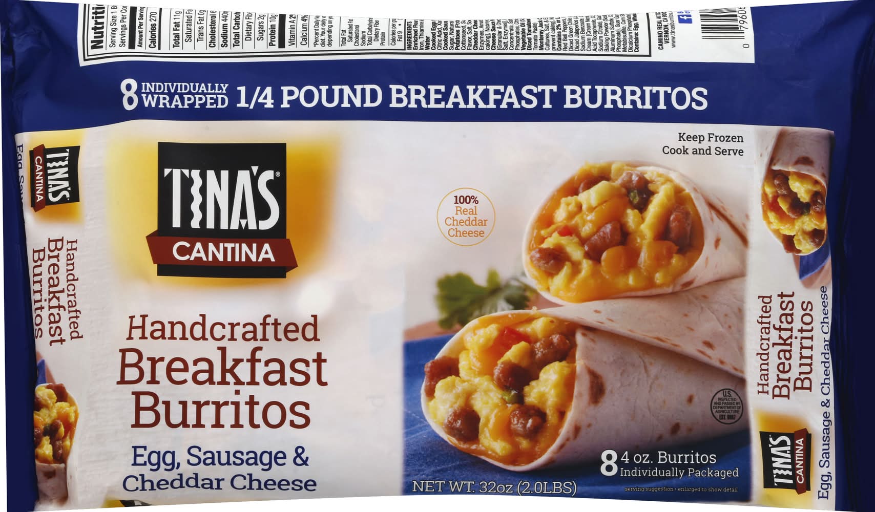Tina's Breakfast Egg, Sausage & Cheddar Burritos (2 lbs, 8 ct)