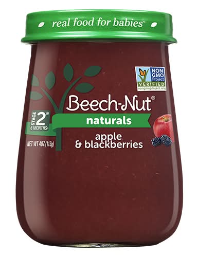 Beech-Nut Apple & Blackberries Baby Food Stage 2 is crafted to meet the nutritional needs of babies aged 6 months and older. It is verified by the Non-GMO Project to ensure that it does not contain genetically modified organisms. The product is designed to provide real food for babies, supporting their growth and development. Beech-nut nutrition company, Address Line 1One Nutritious PlaceCityAmsterdamState/ProvinceNYZIP12010CountryUSAPhone800-BEECH-NUTWebsitewww.beechnut.com