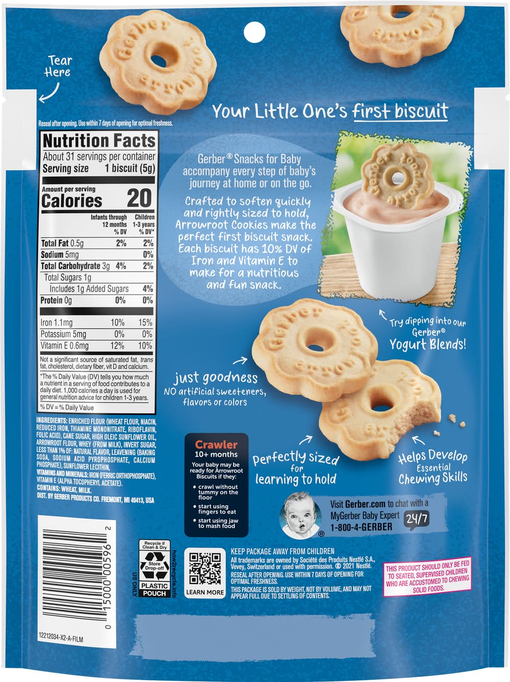Gerber Arrowroot Biscuits Snacks For Baby, 10+ Months (5.5 oz)