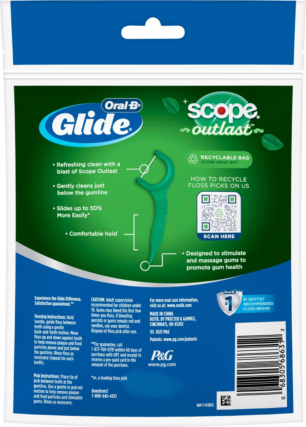 Oral-B Glide Scope Outlast Dental Floss Picks, Mint (75 ct)