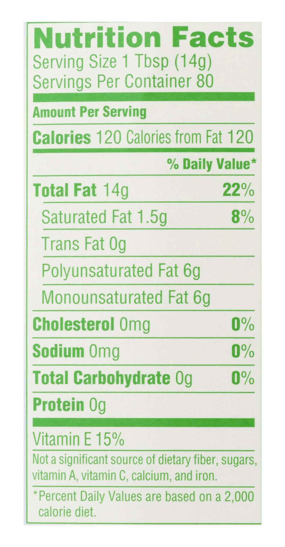 A blend of vegetable & canola oils. 1000 mg of omega-3 ALA per serving. See nutrition information for fat and saturated fat content.