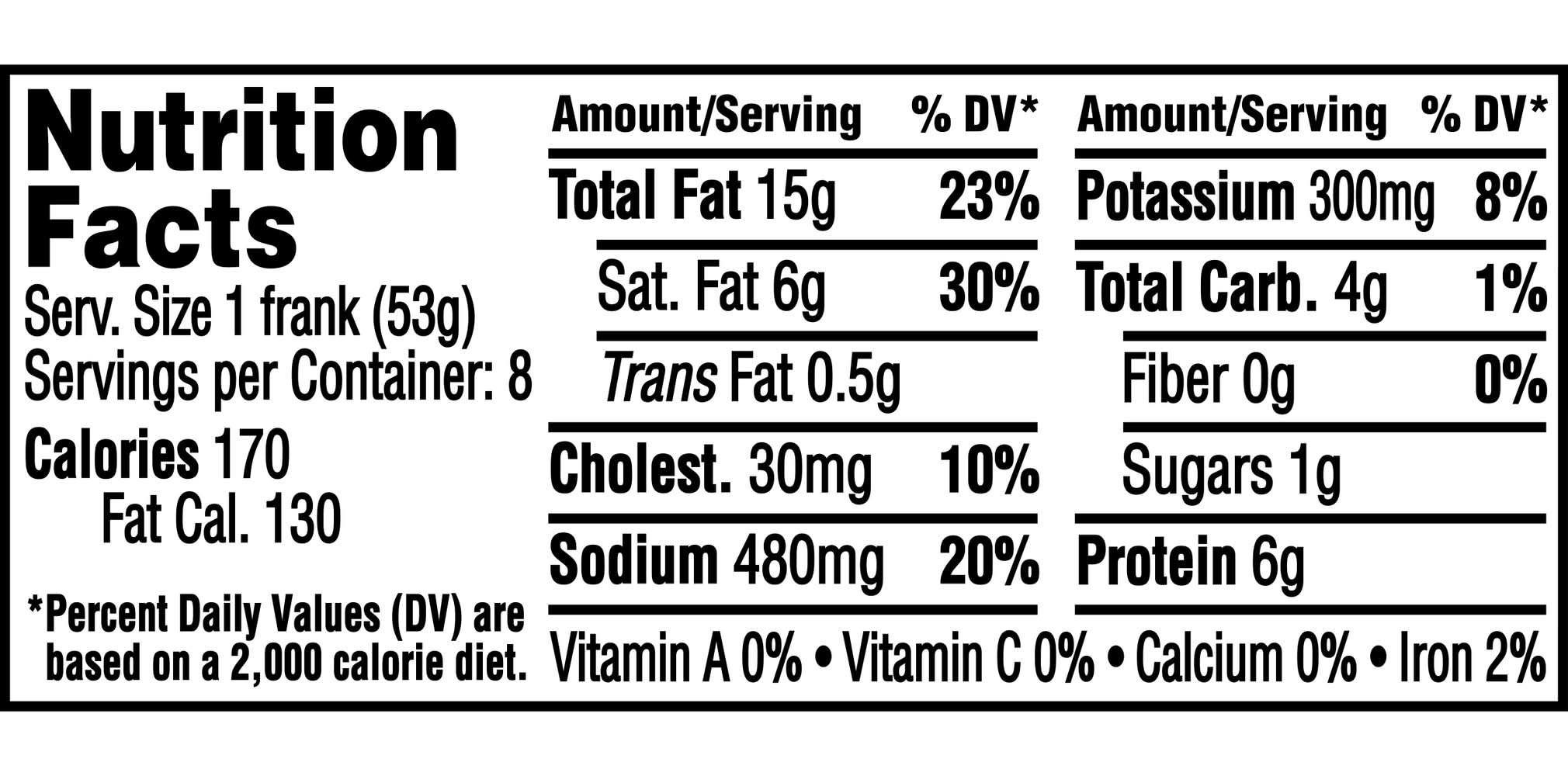 Directions for use: Heat & Eat: If frozen, thaw first. Boil: 4-5 mins. Grill: Medium heat, 6-10 mins. Microwave: Wrap in paper towel; heat 30-35 secs. on high. (Ovens vary, times approx.) For kids under 5 years: Cut frank lengthwise then slice. Keep refrigerated below 40 degrees F at all times. Keep refrigerated. For best quality, use or freeze by date shown on package. Once opened, use within 7 days. Storage recommendation: Keep refrigerated below 40 degrees F at all times. Keep refrigerated.