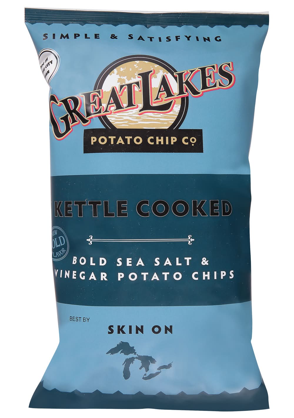 Gluten free. No trans fat. GMO free potatoes & oils. Simple & satisfying. New bold flavor. Here in Great Lakes country, we keep things simple. After all, nature has provided all we need. Clear water. Blue skies. Sugar sand beaches. Flavor: Bold sea salt-vinegar