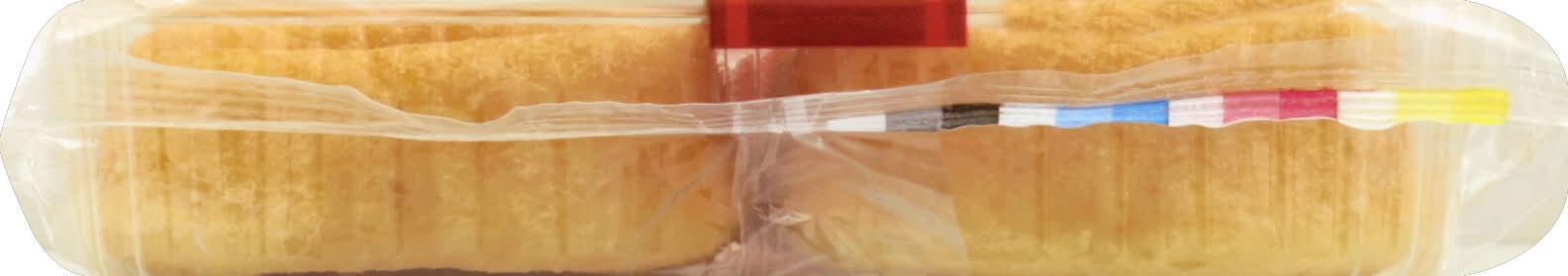 Ingredients: Sugar, Bleached Enriched Flour (Wheat Flour, Thiamine Mononitrate, Riboflavin, Niacin, Reduced Iron, Folic Acid), Water, Eggs, Leavening (Sodium Acid Pyrophosphate, Sodium Bicarbonate, Corn Starch, Calcium Sulfate, Monocalcium Phosphate), Invert Syrup, Soybean Oil (Contains Trivial Amount of Fat), Sodium Propionate (Preservative), Salt, Artificial Flavor, Cellulose Gum, Soy Lecithin, Mono & Diglycerides, Xanthan Gum, Enzymes, Annatto Color Contains: Eggs, Soybeans, Wheat