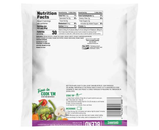 Ingredients: Organic Broccoli, Organic Red Onions, Organic Carrots, Organic Champignon Mushrooms, Organic Edamame (Soy Beans), Organic Red Peppers, Organic Green Beans, Organic Ginger Contains: Soy