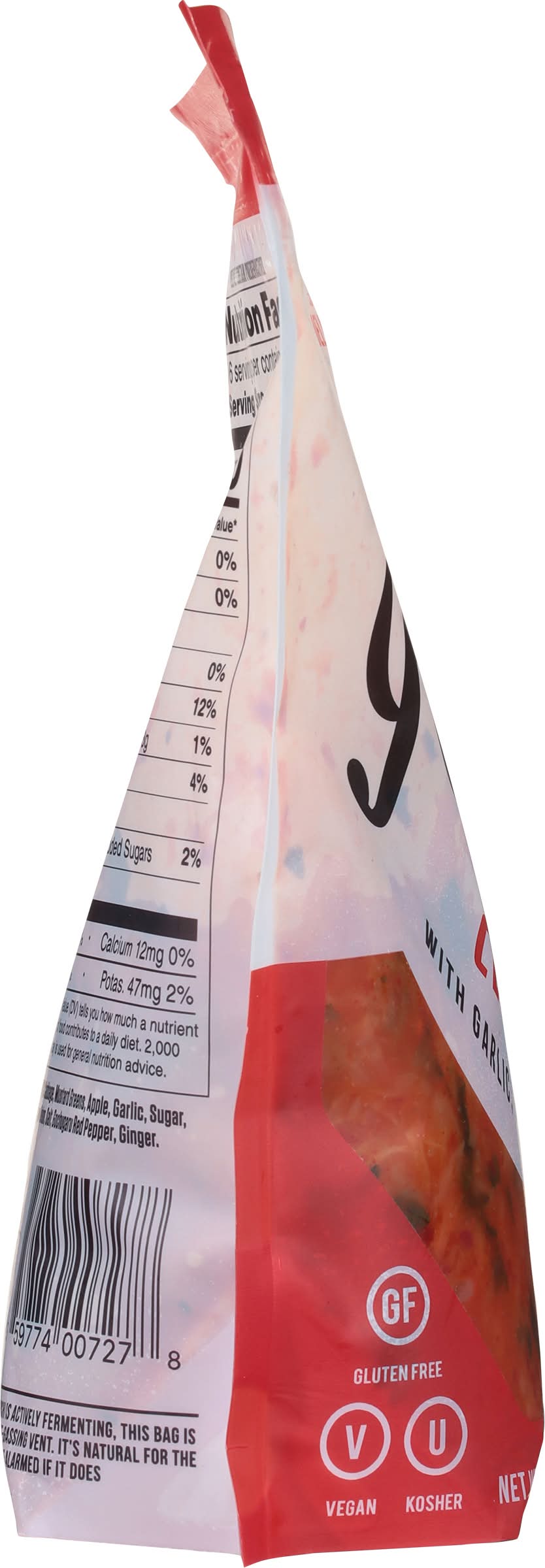 Classic kimchi with garlic, greens, & spicy red pepper. Gluten free. Vegan. Non-GMO Project verified. Live & raw probiotics. Crunchy & delicious. Breakfast is a deliciously tangy topping for eggs & Sammies. Lunch: Add some flare to your salads with our flavor-packed and crunchy Krauts. Snack: The pickles are just what you need for those afternoon cravings. Dinner: Tacos, burgers, chicken, you name it! Add some fermented flavor to your favorite dish. Does not contain preservatives. Packaging: Reusable