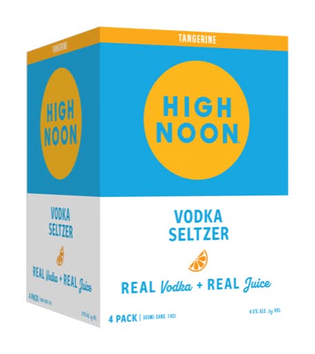 High Noon Tangerine Vodka Seltzer is made with real vodka & real juice, sparkling water and natural flavors. Only 100 calories, no added sugar and gluten free. This small fruit packs a big punch, with a sweet and sour one-two combo, followed by a citrus kick. • Flavor: Tangerine • Pack size: 4 • Alcohol by volume: 4.5%